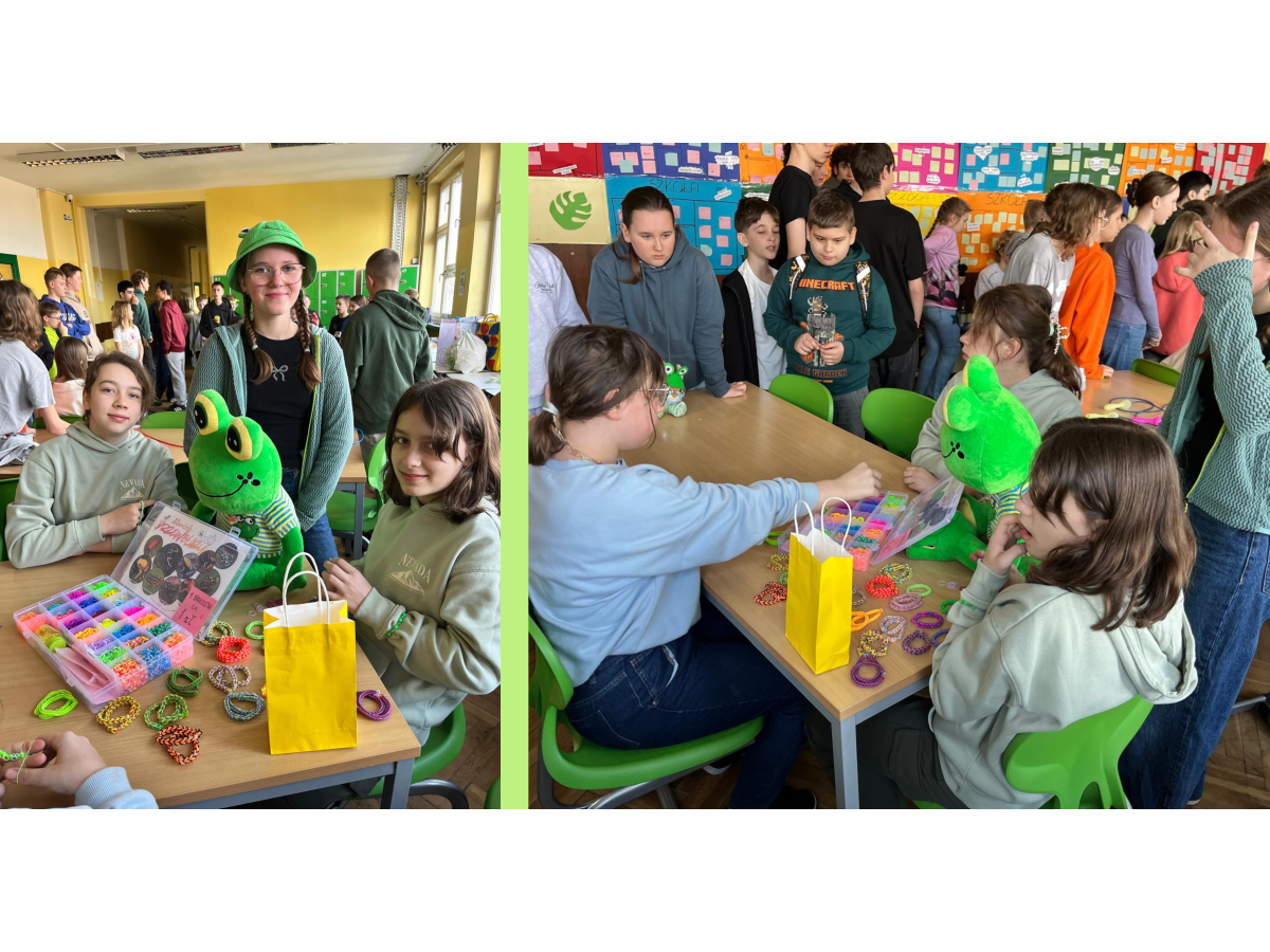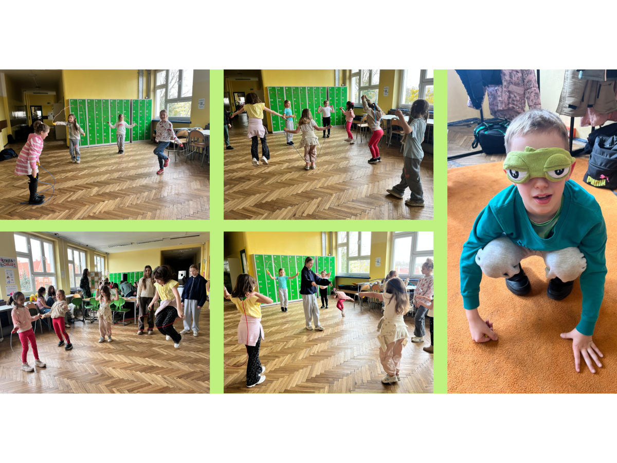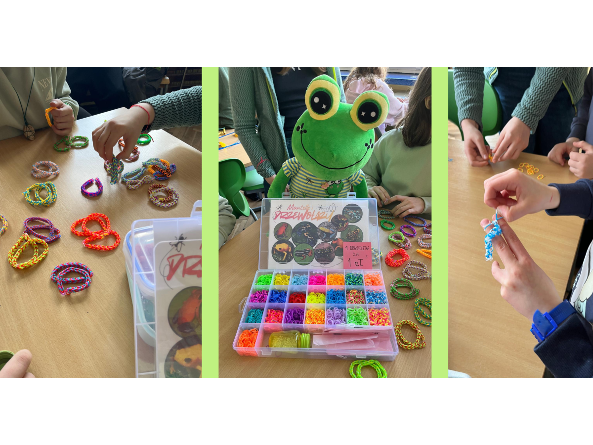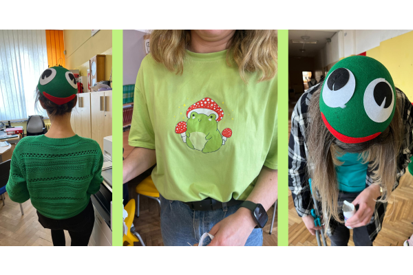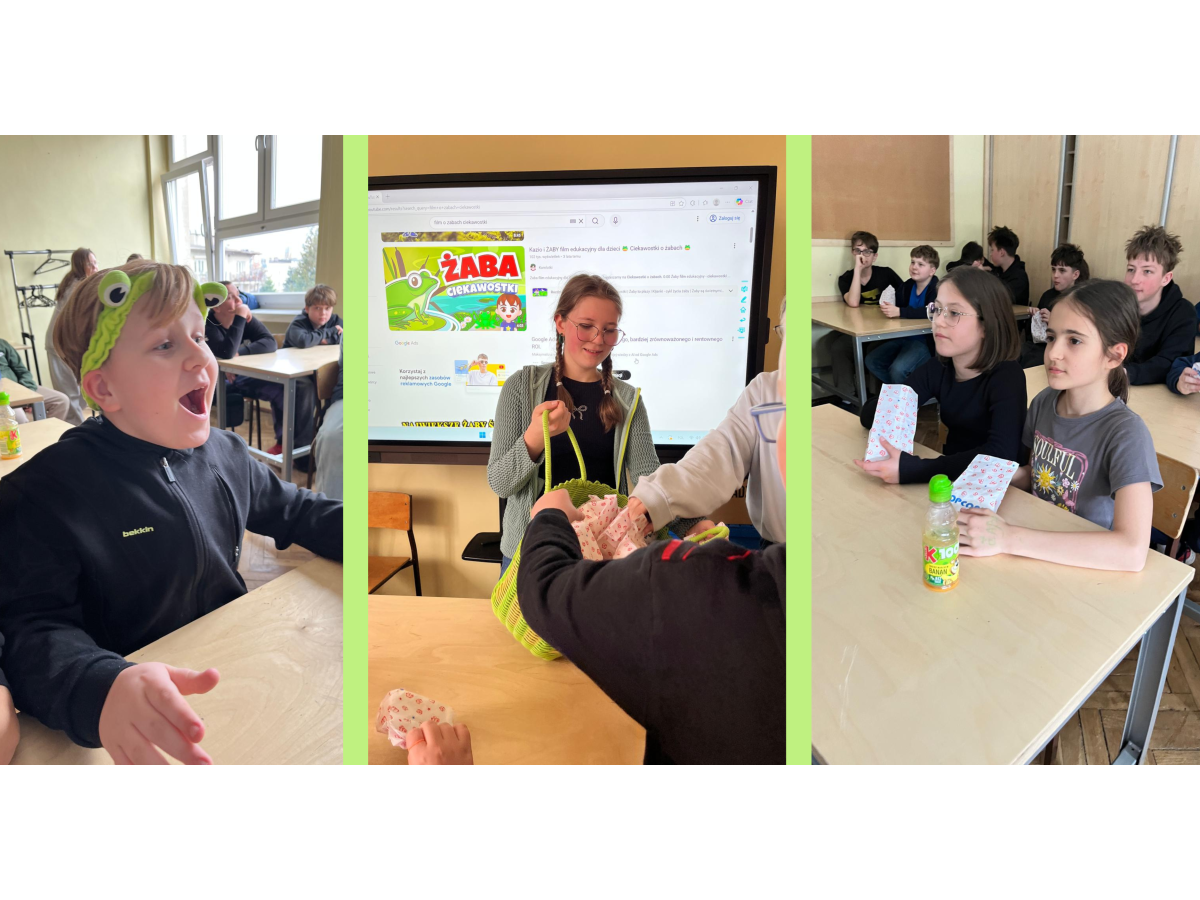 Podczas przerw w sali 203 odbywały się krótkie seanse filmowe o żabach z popcornem, a w specjalnym kąciku DIY tworzono kolorowe żabie bransoletki na wzór różnych gatunków żab. Na ścianach korytarzy wisiały kody QR, które przekierowywały chętnych do interaktywnych quizów wiedzy o żabach. Jednak głównym punktem programu były konkursy, między innymi na najbardziej żabi strój. Uczniowie wykazali się ogromną kreatywnością – pojawiły się zielone przebrania, opaski, okulary, a także pomysłowe elementy wykonane z materiałów recyklingowych. Dużym zainteresowaniem cieszył się również konkurs na żabi rechot, który dostarczył wszystkim wielu powodów do śmiechu. Nie zabrakło także aktywności ruchowych – podczas zawodów w skakaniu na skakance uczniowie mogli sprawdzić swoją „żabią” kondycję. Zwycięzcy otrzymali dyplomy i słodkie upominki. Za najbardziej pomysłowy żabi strój komisja wyróżniła: Antoninę Żurawską i Rozalię Lassottę z klasy 3a oraz Zuzannę Ptaszyńską z klasy 5a. W skoku na skakance wygrali: Kinga Szymkuć z klasy 6b i Natalia Nurkowska z klasy 6b oraz Maksymilian Stecki z klasy 3a. Natomiast największe owacje za żabi rechot otrzymali: John Macaulay Walczyna z klasy 8a, Natalia Nurkowska z klasy 6b i Anneliese Osiecka z klasy 1a. Gratulujemy!