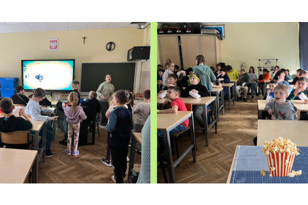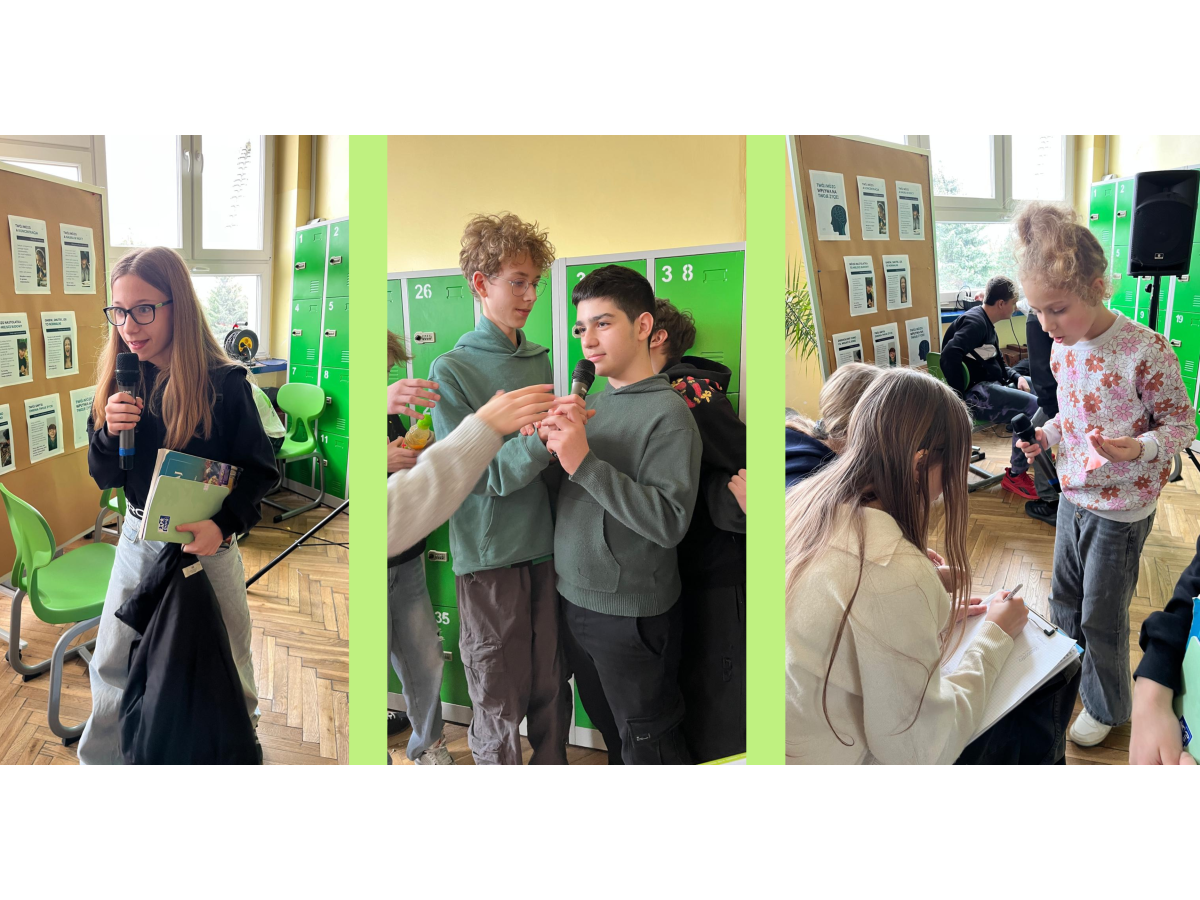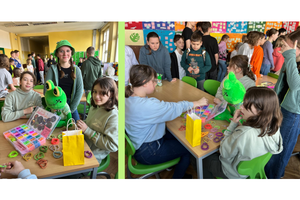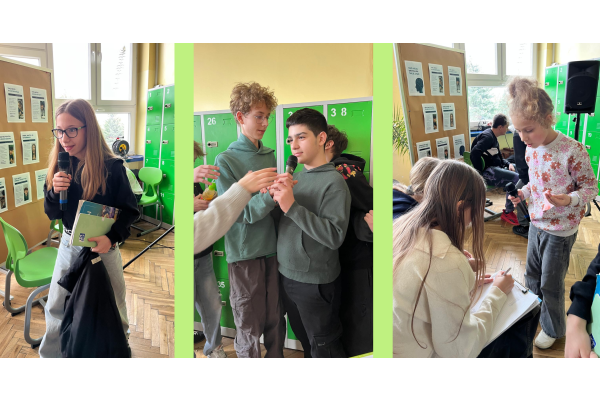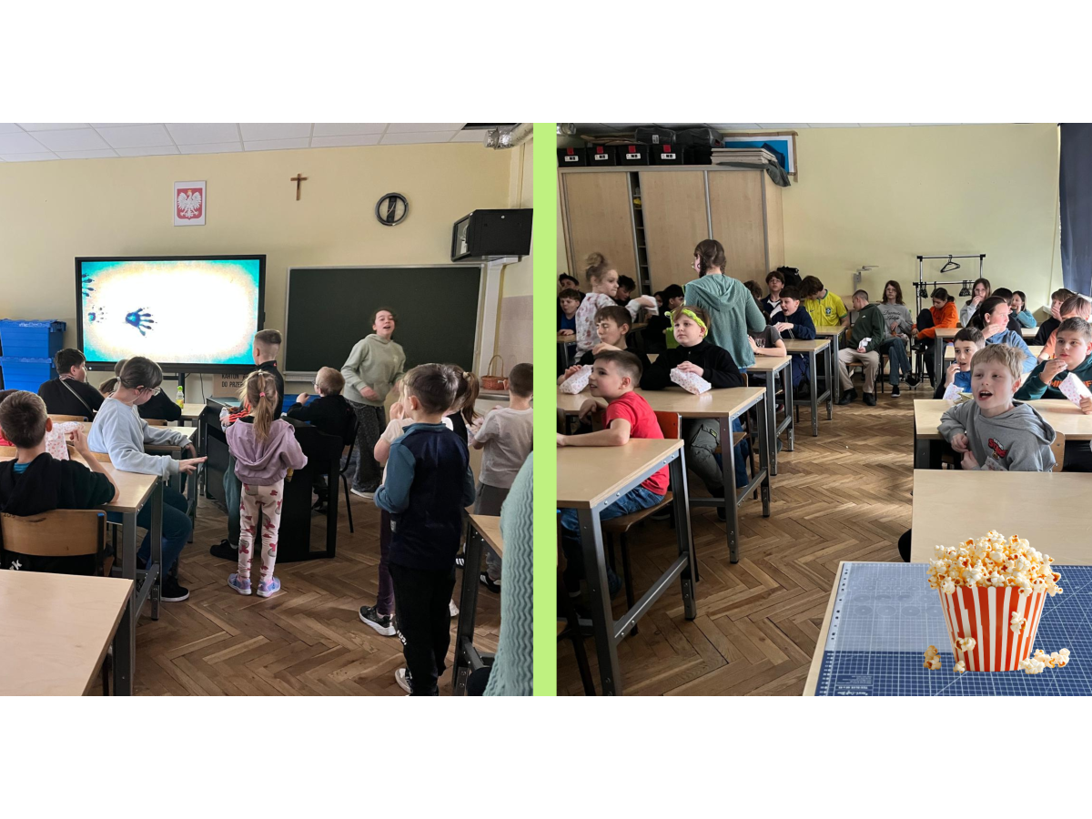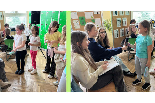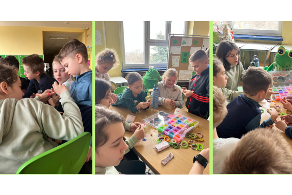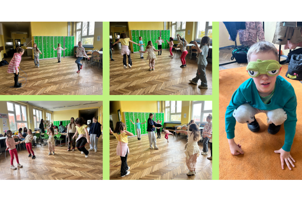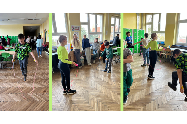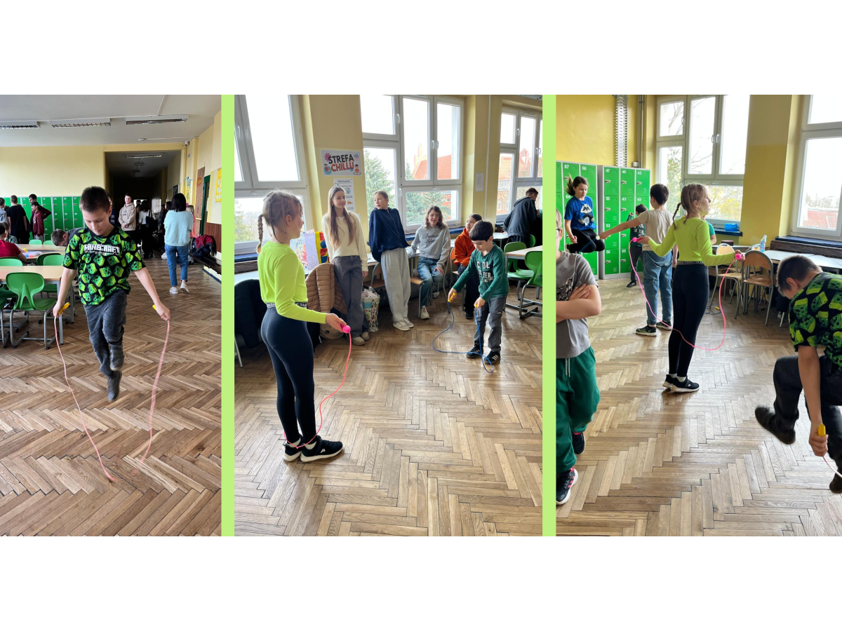 Podczas przerw w sali 203 odbywały się krótkie seanse filmowe o żabach z popcornem, a w specjalnym kąciku DIY tworzono kolorowe żabie bransoletki na wzór różnych gatunków żab. Na ścianach korytarzy wisiały kody QR, które przekierowywały chętnych do interaktywnych quizów wiedzy o żabach. Jednak głównym punktem programu były konkursy, między innymi na najbardziej żabi strój. Uczniowie wykazali się ogromną kreatywnością – pojawiły się zielone przebrania, opaski, okulary, a także pomysłowe elementy wykonane z materiałów recyklingowych. Dużym zainteresowaniem cieszył się również konkurs na żabi rechot, który dostarczył wszystkim wielu powodów do śmiechu. Nie zabrakło także aktywności ruchowych – podczas zawodów w skakaniu na skakance uczniowie mogli sprawdzić swoją „żabią” kondycję. Zwycięzcy otrzymali dyplomy i słodkie upominki. Za najbardziej pomysłowy żabi strój komisja wyróżniła: Antoninę Żurawską i Rozalię Lassottę z klasy 3a oraz Zuzannę Ptaszyńską z klasy 5a. W skoku na skakance wygrali: Kinga Szymkuć z klasy 6b i Natalia Nurkowska z klasy 6b oraz Maksymilian Stecki z klasy 3a. Natomiast największe owacje za żabi rechot otrzymali: John Macaulay Walczyna z klasy 8a, Natalia Nurkowska z klasy 6b i Anneliese Osiecka z klasy 1a. Gratulujemy!