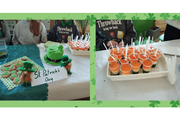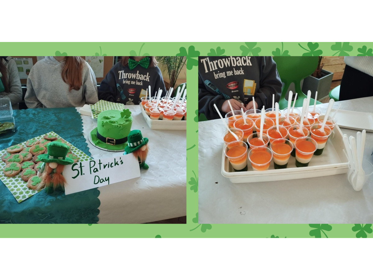 Jak co roku z okazji tego święta uczniowie klas 4-8 przygotowali kawiarenkę ze smakołykami w kolorze zielonym. Nie zabrakło babeczek, ciasteczek, galaretek w kolorze irlandzkiej flagi. Furorę zrobił tort w kształcie czapki Leprechauna - irlandzkiego, psotnego duszka. Dziękujemy za to arcydzieło Solomii Shapoval z klasy 4b jak i innym uczestnikom z klas: 5a, 8a, 6a oraz 7a i 7b. Najciekawsze przysmaki zostaną nagrodzone innymi smakołykami i dyplomami.