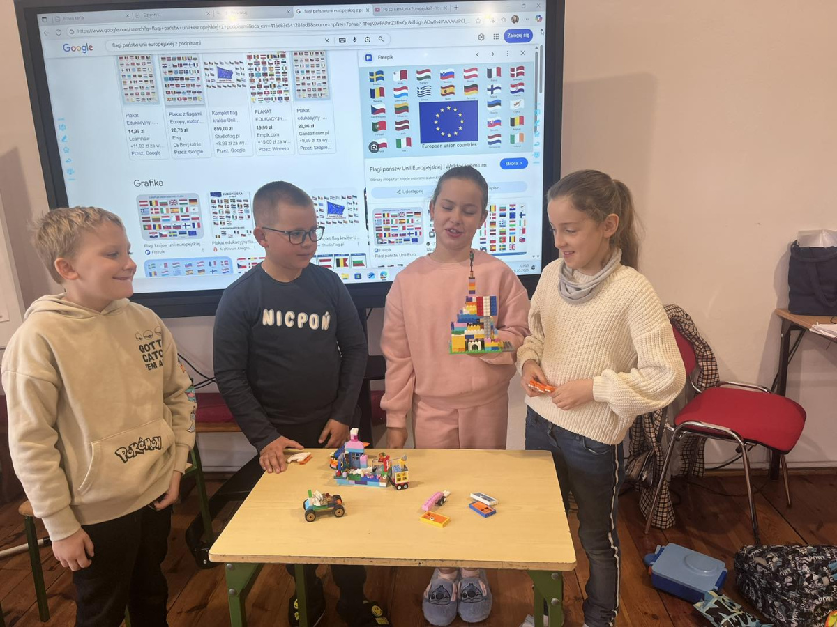 Motto trzeciego dnia: „Prawo chroni każdego z nas”. Na szkolnej „ścianie praw dziecka” uczniowie zapisywali, które prawa są dla nich najważniejsze - do nauki, do zabawy, do przyjaźni. Dni Erasmusa świętowały również klasy pierwsze i drugie. Uczniowie wzięli udział w inspirujących zajęciach poświęconych krajom Unii Europejskiej. Dzieci poznały charakterystyczne budowle z różnych państw, a następnie z entuzjazmem próbowały odtworzyć je z klocków, między innymi: Fontannę Di Trevi, Coloseum, Krzywą Wieżę w Pizie, wieżę zegarową Big Ben, Wieżę Eiffla i Partenon z Aten. Wykazały się przy tym kreatywnością i współpracą. W kolejnej części zajęć rozmawiali o różnorodności krajów europejskich - ich językach, kulturze i zwyczajach. Uczniowie wspólnie wykonali kolorowy plakat przedstawiający flagi wszystkich państw członkowskich UE. Na zakończenie doszli razem do wniosku, że dzięki różnorodności i współpracy możemy osiągnąć więcej jako zjednoczona Europa.