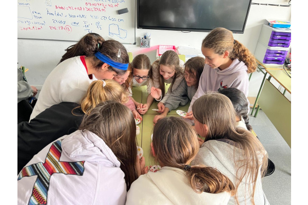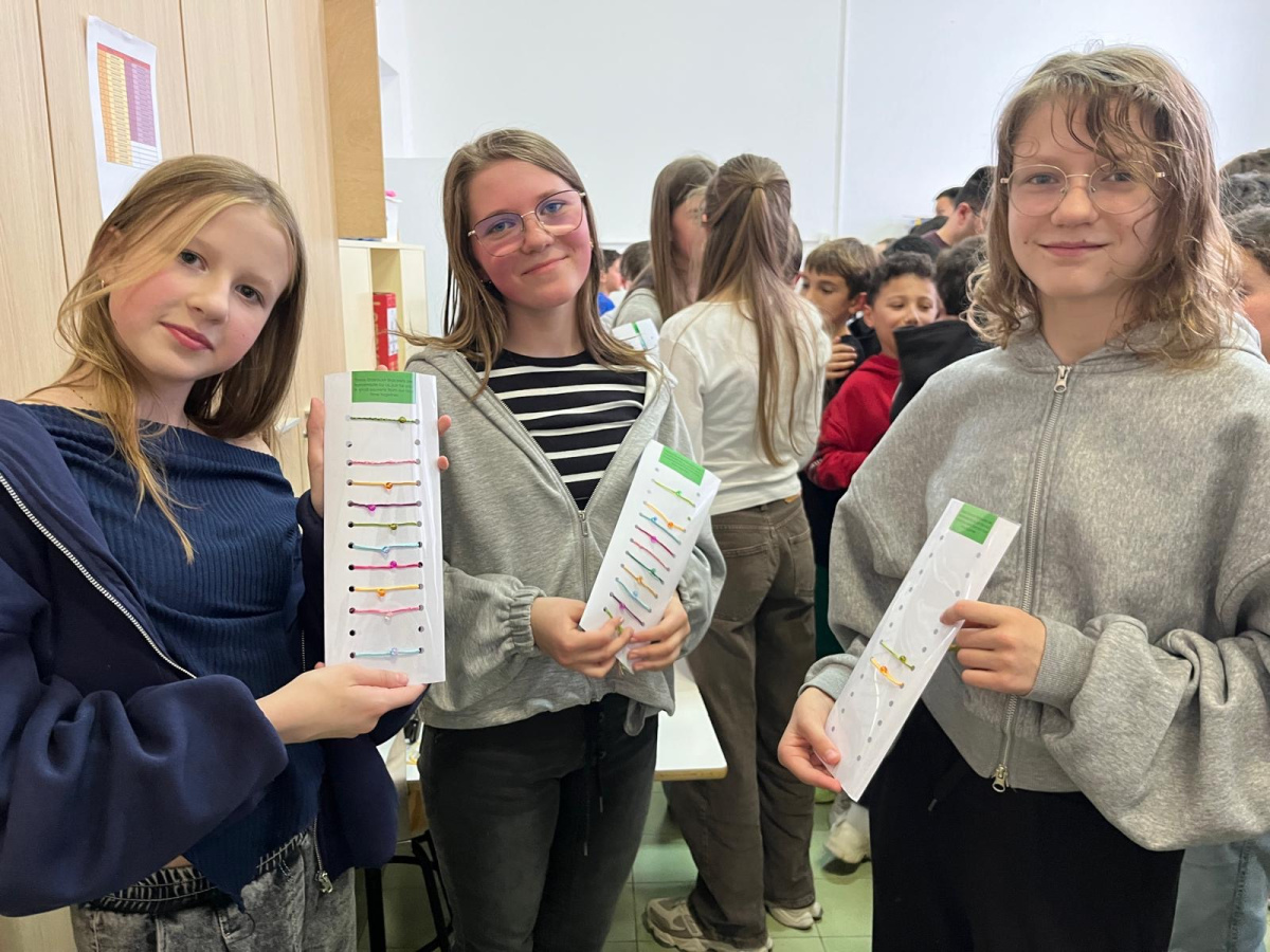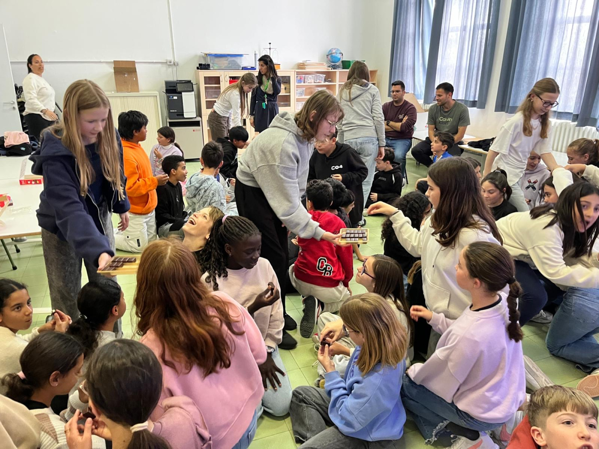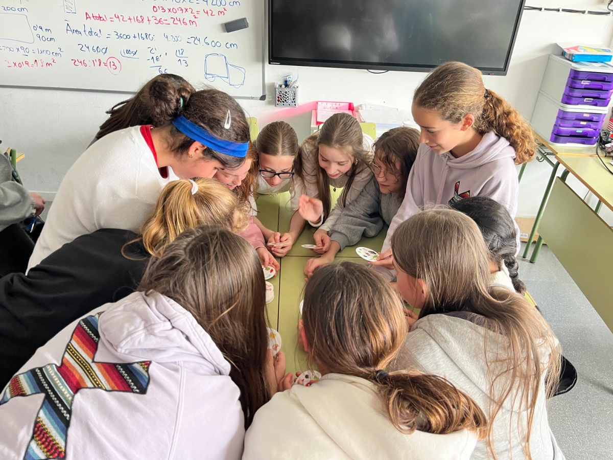 Następnie przyszedł czas na integrację. Podczas ćwiczeń typu icebreakers nieśmiałe uśmiechy szybko zamieniły się w rozmowy, śmiech i… początki nowych znajomości. Hiszpańscy uczniowie opowiedzieli o swoim kraju i szkole, a nasze uczennice z dumą zaprezentowały Bydgoszcz oraz swoją szkołę odtwarzając filmiki przygotowane jeszcze w Polsce przez szkolną społeczność, co wzbudziło ogromne zainteresowanie gospodarzy. Była to też świetna okazja do wymiany doświadczeń i spojrzenia na codzienne życie szkolne z innej perspektywy. Udało nam się wszystkich poczęstować przywiezionym z Polski ptasim mleczkiem oraz obdarować „bransoletkami przyjaźni” przygotowanymi własnoręcznie przez Alicję.