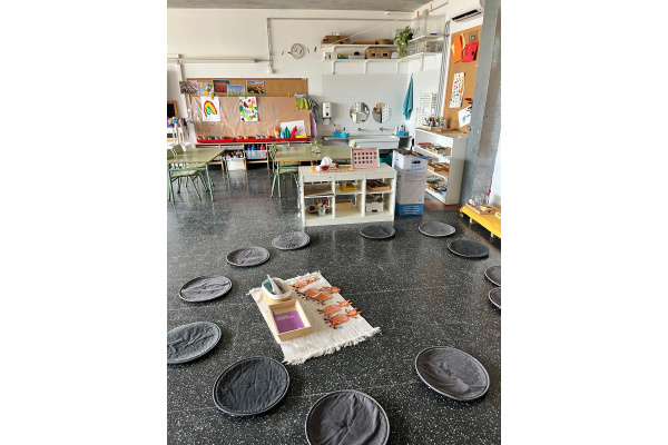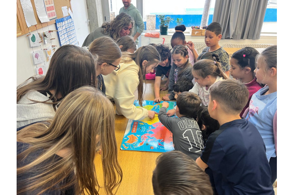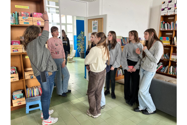 Dzień rozpoczął się od ciepłego powitania oraz zwiedzania szkoły, podczas którego uczennice miały okazję poznać jej przestrzeń oraz codzienne funkcjonowanie. Zaskoczyło nas, że w szkole nie ma dzwonków, a czas lekcji i przerw wyznaczają piosenki odtwarzane z głośników i że obowiązuje absolutny zakaz przynoszenia telefonów komórkowych do szkoły. Lekcje trwają od 9 do 16.30. Co więcej, uczniowie tutaj przechowują swoje wyposażenie na specjalnych regałach przed klasami. Kurtki chowają do wiklinowych koszy lub wieszają je na ścianie. Każdy ma takie same zeszyty, piórniki i przybory szkolne, które na początku roku fundują rodzice. Wszelkie materiały dydaktyczne, pomoce naukowe i gry są również poza salami lekcyjnymi - ogólnodostępne dla wszystkich. Uczniowie mają swoje własne laptopy, które przechowywane są w klasach, ale na potrzeby realizacji projektów zabiera się je do domu. Zarówno w budynku szkoły jak i na zewnątrz jest mnóstwo kanap i puf do relaksu, a także cała masa kącików do gier i zabaw. Uczniowie samodzielnie założyli i dbają o szkolny ogródek. Na korytarzu znajdują się dedykowane narzędzia ogrodnicze, z których w każdej chwili można skorzystać. Ogromną uwagę poświęca się tutaj emocjom o czym świadczą kąciki wyciszenia i wszechobecne plakaty o tej tematyce.