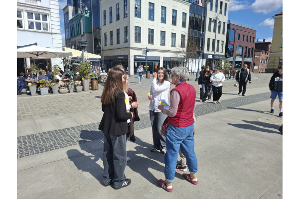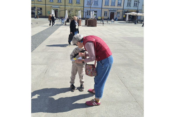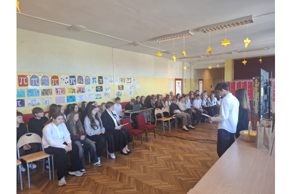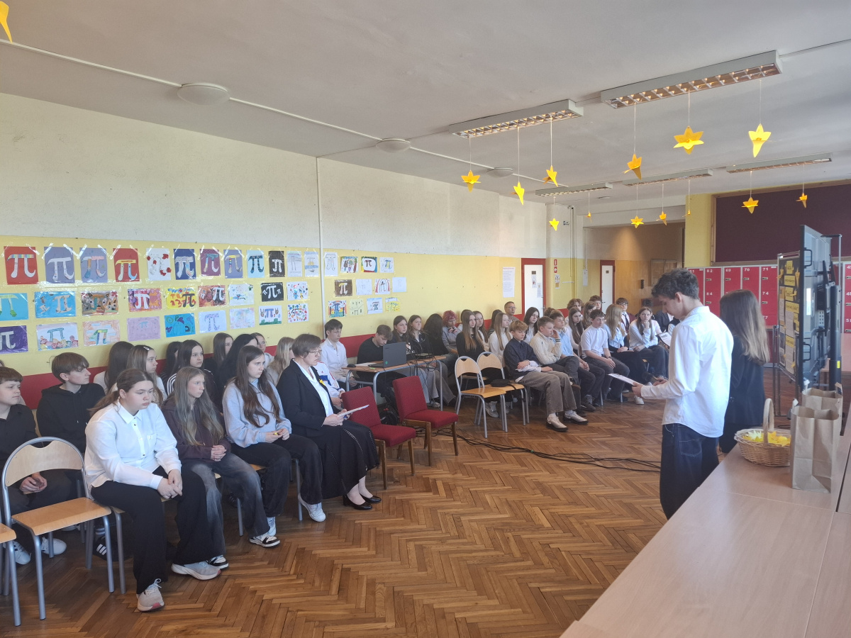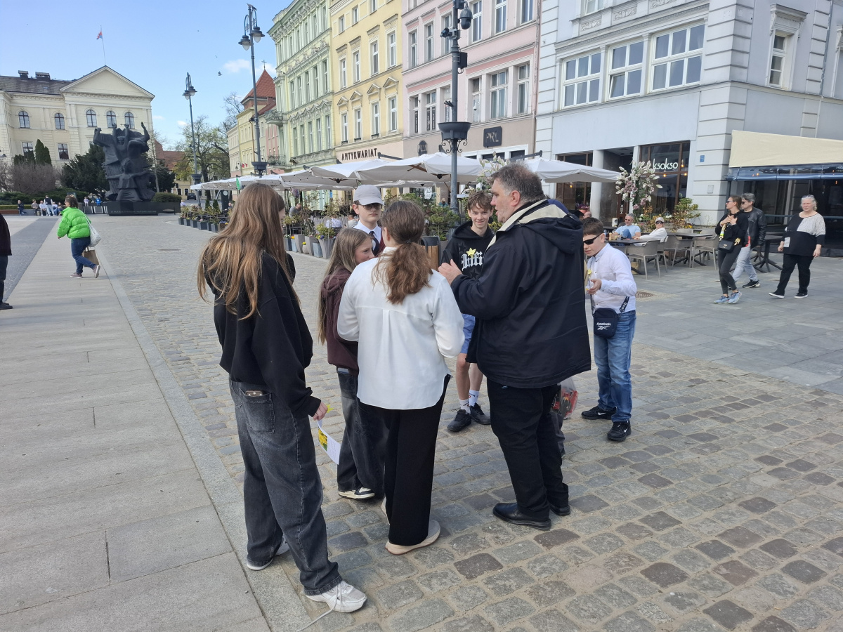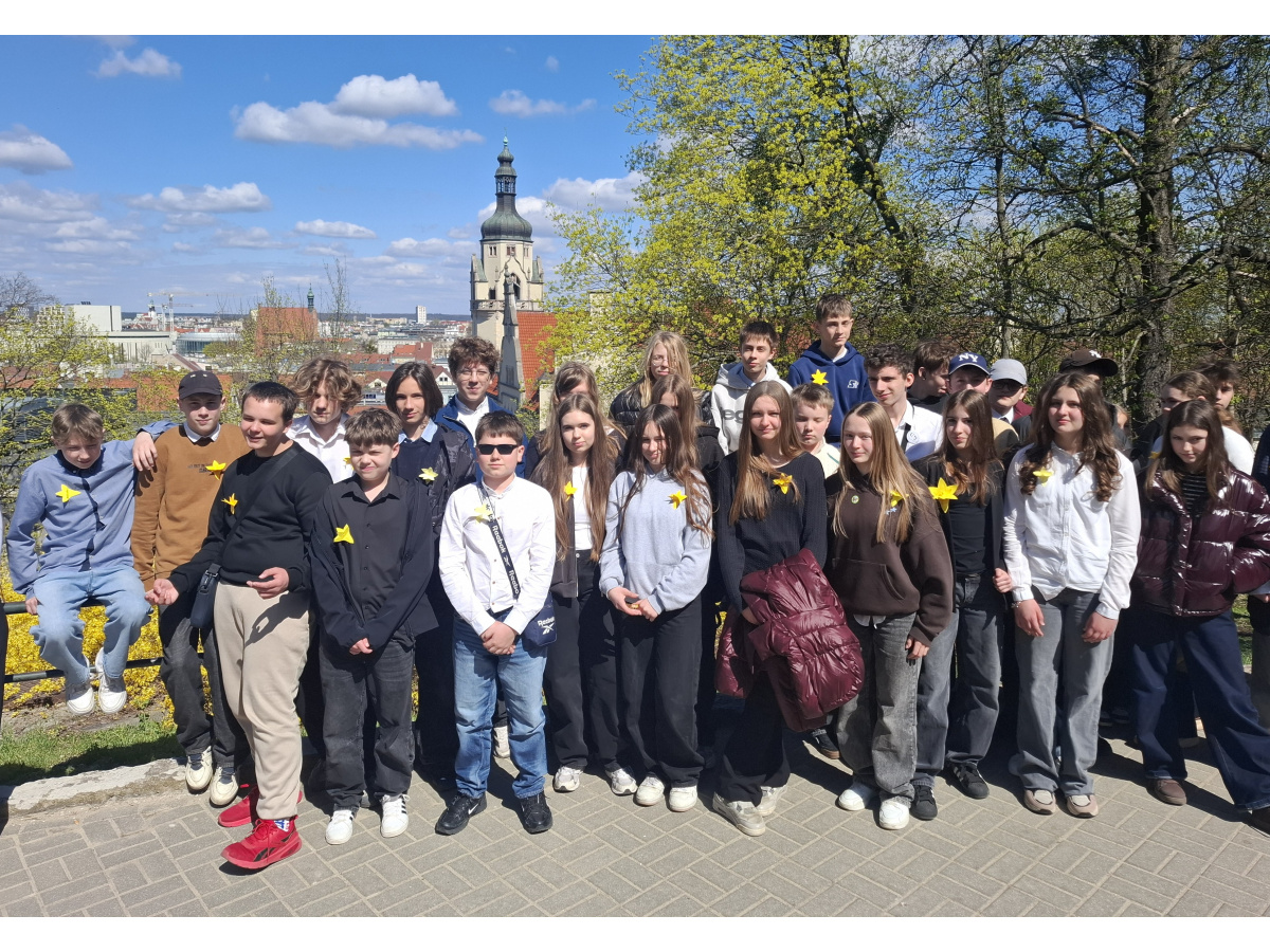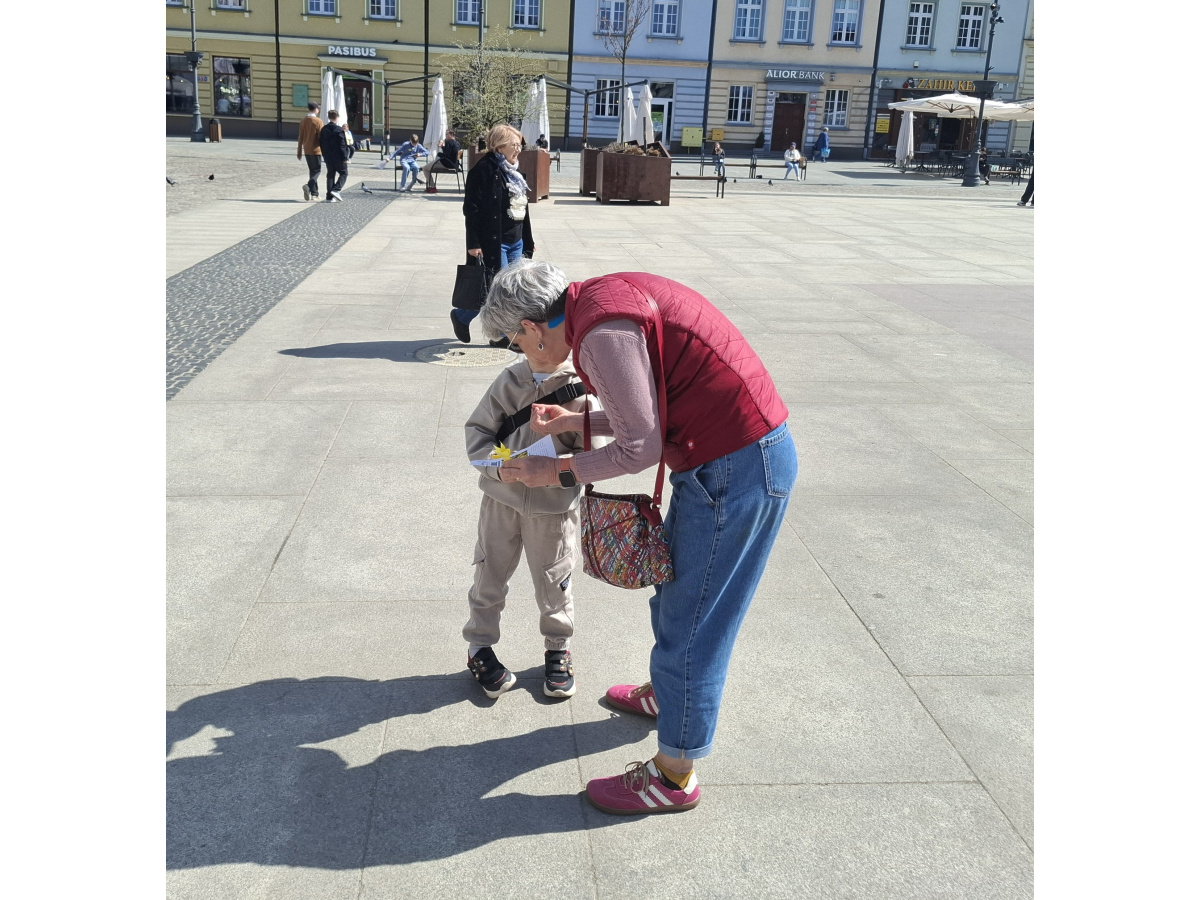 Tematyczne spotkanie odbyło się w piątek, 17 kwietnia 2026 roku, a tuż po nim przedstawiciele najstarszych klas wyszli poza mury naszej szkoły, by rozdać napotkanym przechodniom własnoręcznie wykonane papierowe żonkile – symbol upamiętniający bohaterów tamtych wydarzeń. Rozdawane przez wolontariuszy w ramach akcji papierowe żonkile są nie tylko symbolem pamięci o ofiarach Zagłady, ale także znakiem odwagi i godności, sprzeciwu wobec obojętności oraz solidarności z prześladowanymi.