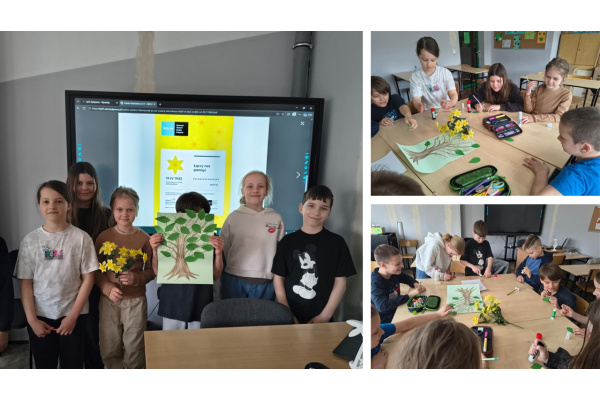Akcja „Żonkile” była także realizowana w klas 1–3. Młodsi uczniowie wzięli udział w zajęciach inspirowanych filmem animowanym „Co widziały drzewa”, który przybliżył im historię rodziny Ulmów oraz wartości takie jak dobro, odwaga i pomoc innym.