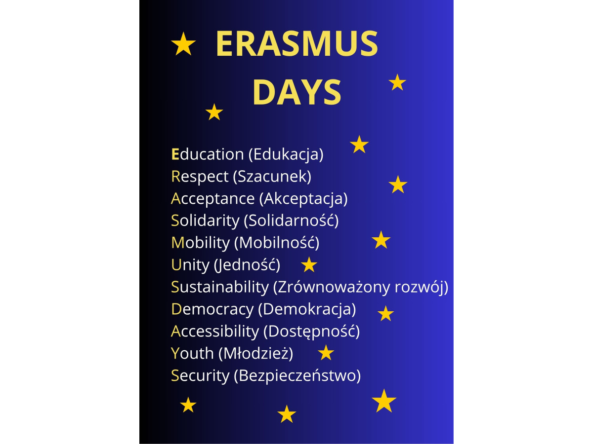 Zapraszamy całą społeczność szkolną do obchodów ERASMUS DAYS w dniach 13-17.10. W tym roku punktem wyjścia są wartości Unii Europejskiej pod hasłem: „#ErasmusDays 2025: Żyj zgodnie z naszymi wartościami, inspiruj naszą przyszłość”. Sześć wartości UE jest wyrazem wspólnego ideału opartego na: poszanowaniu godności osoby ludzkiej, wolności, demokracji, równości, praworządności i prawach człowieka. Wartości te są wspólne dla krajów UE w społeczeństwie, w którym dominuje integracja, tolerancja, sprawiedliwość, solidarność i niedyskryminacja.