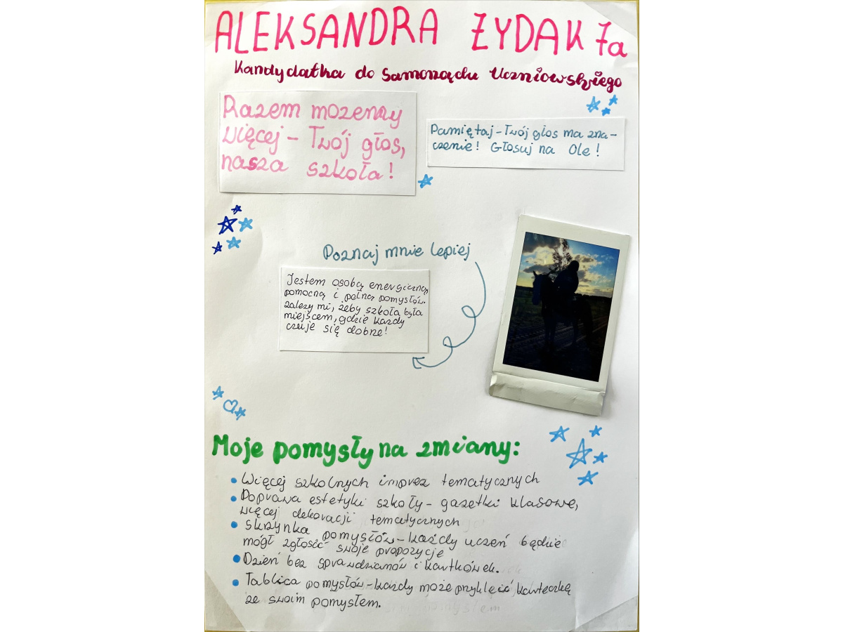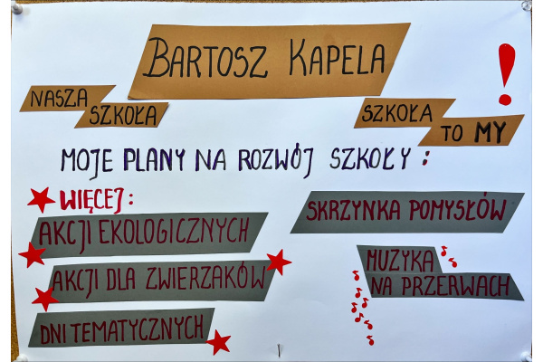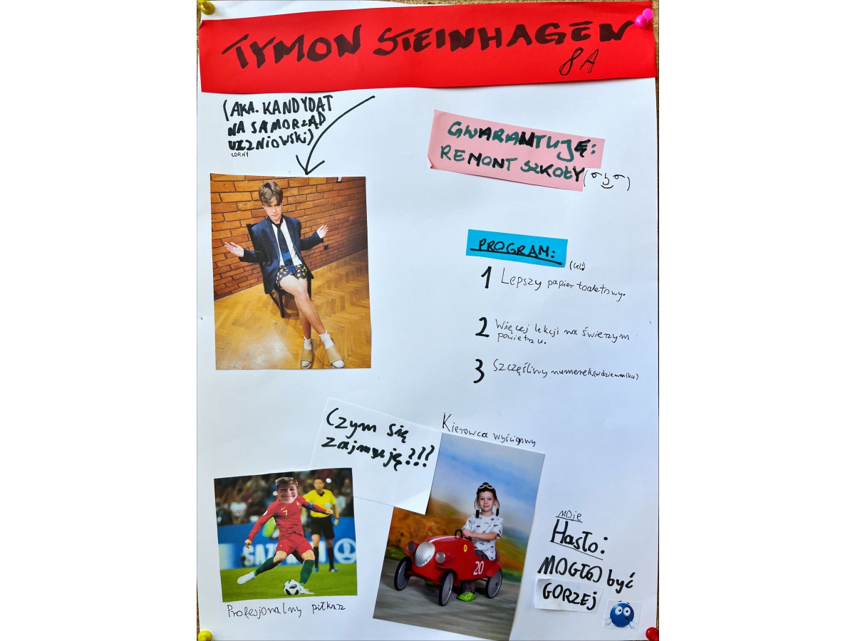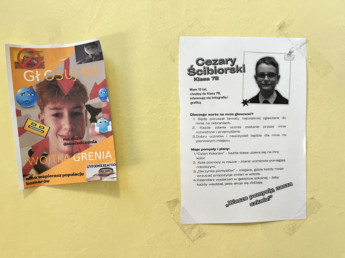Ostatnio działo się u nas naprawdę sporo. Szkoła zamieniła się w prawdziwą arenę polityczną! Kandydaci do Rady Samorządu Uczniowskiego zrobili wszystko, żeby przekonać Was do swoich pomysłów – były hasła, obietnice, ulotki i przede wszystkim plakaty, które przyciągały spojrzenia jak magnes.
