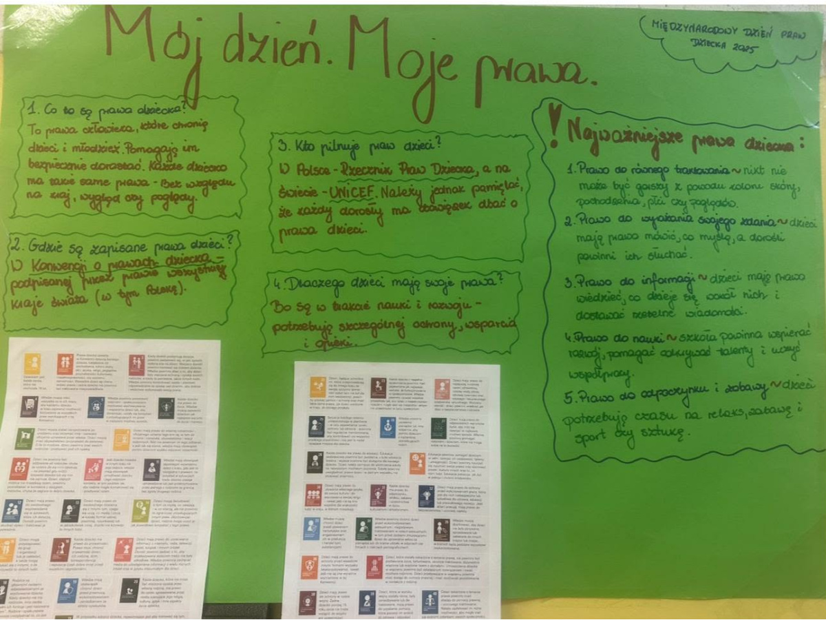 Uczniowie naszej szkoły wzięli udział w projekcie Fundacji UNICEF „Mam prawo do…”, uczestnicząc w zajęciach „Projektujemy szkołę przyjazną prawom dziecka” oraz „Tajemnica zaginionych praw”. Zajęcia pozwoliły dzieciom poznawać swoje prawa, uczyć się współdecydowania i wyrażania opinii oraz budować pozytywne relacje w klasie i szkole.