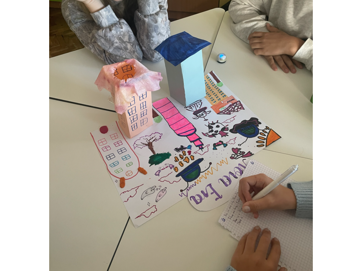 Podczas trzygodzinnych zajęć młodzi architekci i urbaniści najpierw rozmawiali o tym, co powinno znaleźć się w idealnym mieście. Następnie podzielili się zadaniami, opracowali plan działania i skonfrontowali swoje pomysły z realnymi ograniczeniami czasu i technologii. W praktycznej części projektu uczniowie tworzyli plakaty i makiety swoich miast, testowali rozwiązania z pomocą ozobotów, dodawali obliczenia matematyczne (liczba mieszkańców, powierzchnia, skala), a także przygotowali opisy w języku angielskim. Finałem była prezentacja – w czasie której ozoboty poruszały się po wyznaczonych trasach w futurystycznych miastach, a uczniowie w języku angielskim opowiadali o swoich projektach.