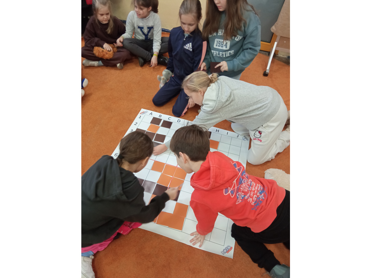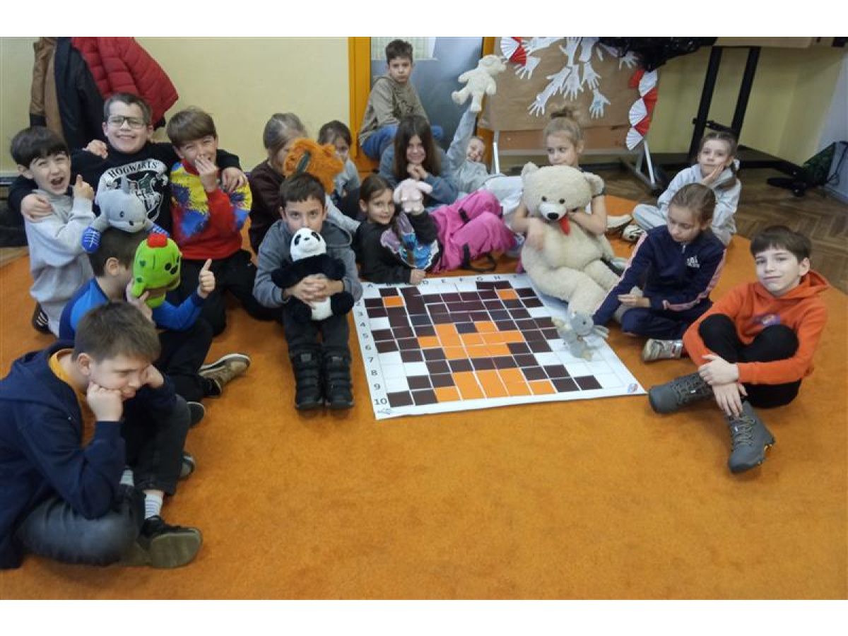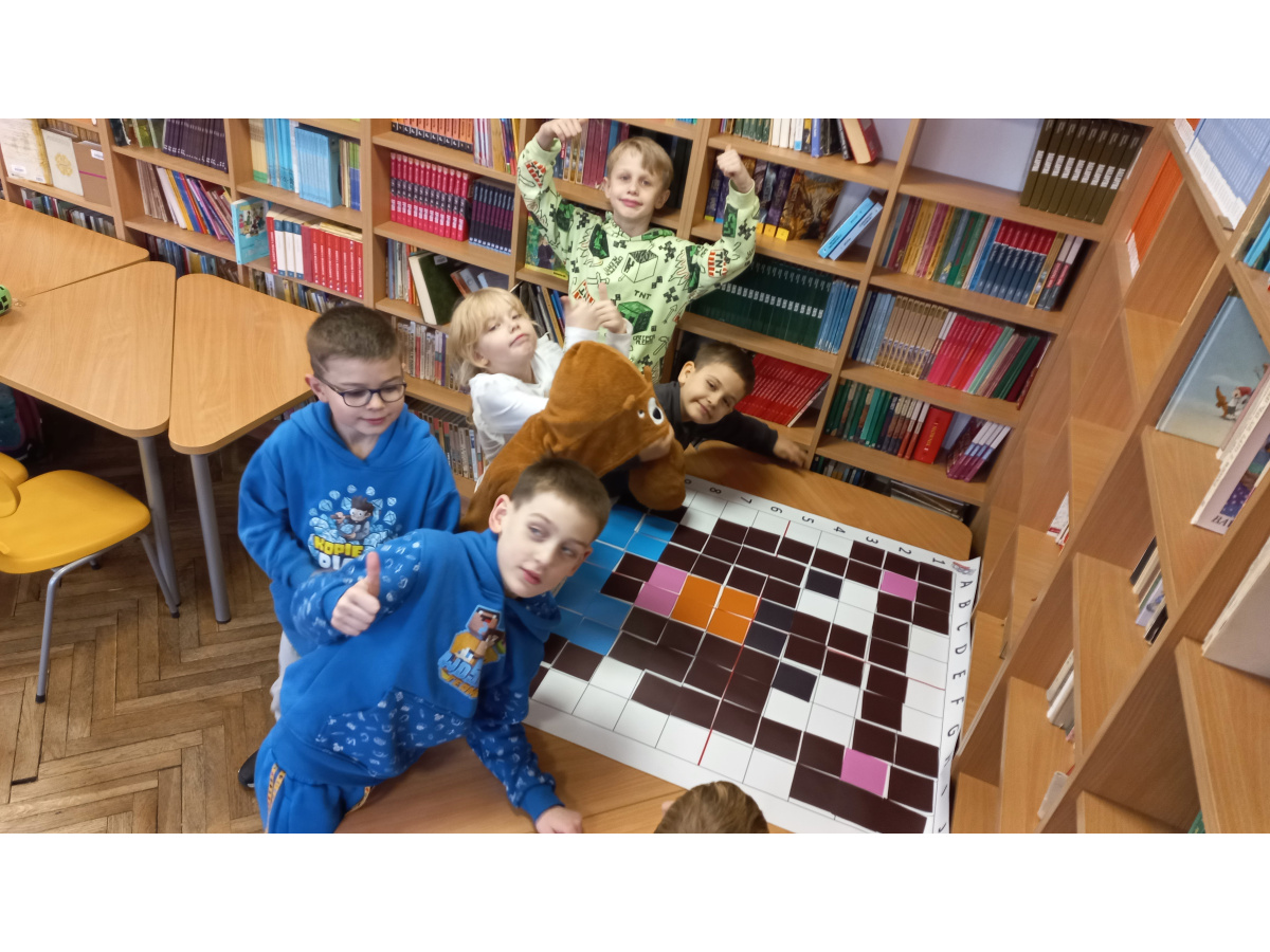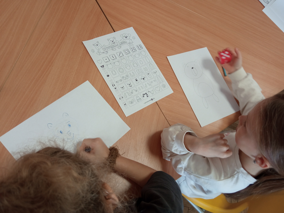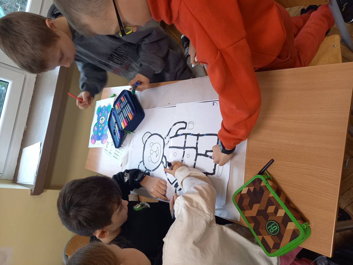 Równolegle misiowe aktywności odbywały się także w świetlicy szkolnej. W ramach zajęć tematycznych dzieci brały udział w warsztatach plastycznych „Uczymy się rysować misia”, podczas których doskonaliły swoje umiejętności manualne, precyzję oraz twórcze myślenie. Odbył się również quiz wiedzy o misiach i bajkowych bohaterach, który sprawdził wiadomości uczniów i był okazją do wspólnej zabawy. Pierwsze miejsce w quizie zajęła Veronika Y. z klasy 2b.