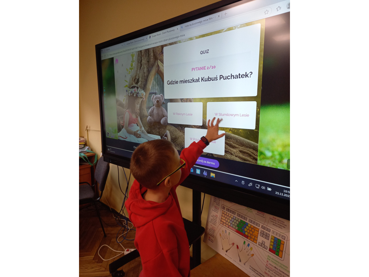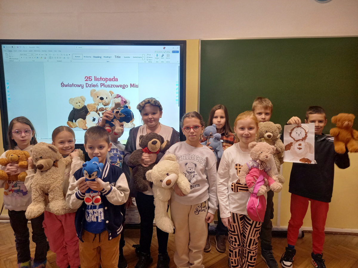 Ważnym momentem obchodów był 25 listopada, kiedy dzieci przyszły do szkoły w misiowych strojach i przyniosły swoje ulubione pluszaki. Szkoła wypełniła się uśmiechami, miękkimi przytulankami i bajkową atmosferą.