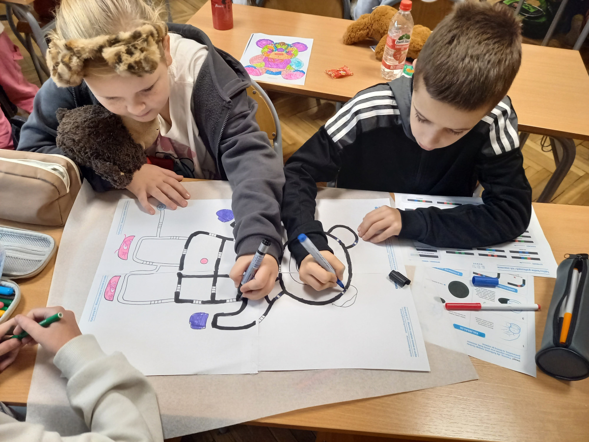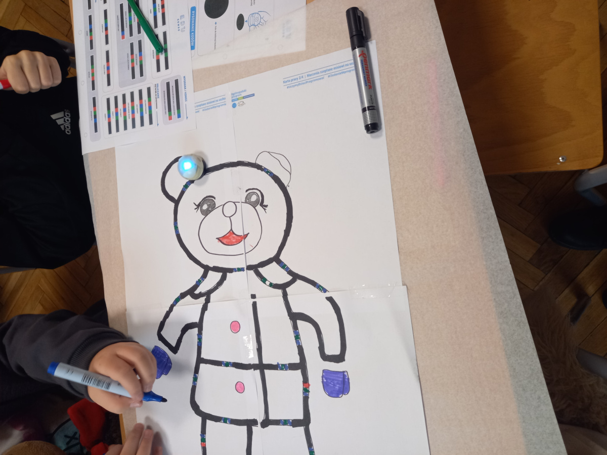 W ramach misiowo-bajkowego tygodnia odbyły się również zajęcia z kodowania, podczas których dzieci rozwijały logiczne myślenie, spostrzegawczość i umiejętność współpracy, wzięły także udział w zabawach z wykorzystaniem Ozobotów. Uczniowie programowali roboty, tworząc dla nich trasy i zadania związane z tematyką misiów.