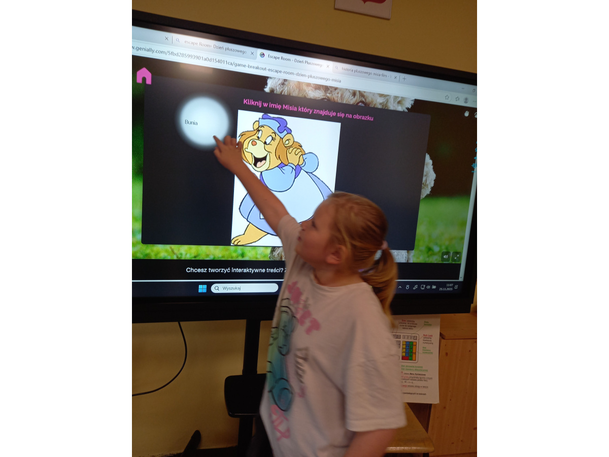 Dzieci poznały również historię Światowego Dnia Pluszowego Misia, a zdobywaną wiedzę utrwalały poprzez rozwiązywanie zadań w formie Escape Roomu, co dostarczyło im wielu emocji i radości.