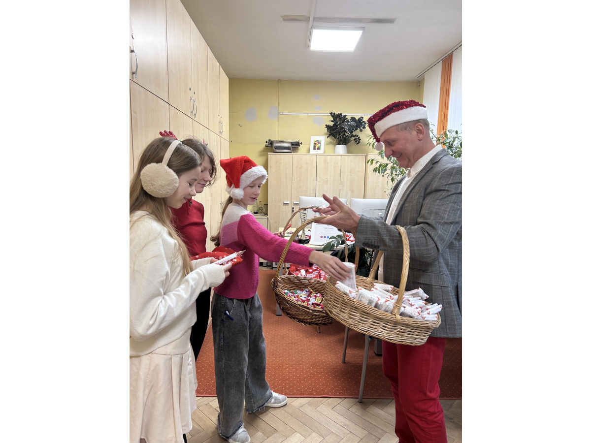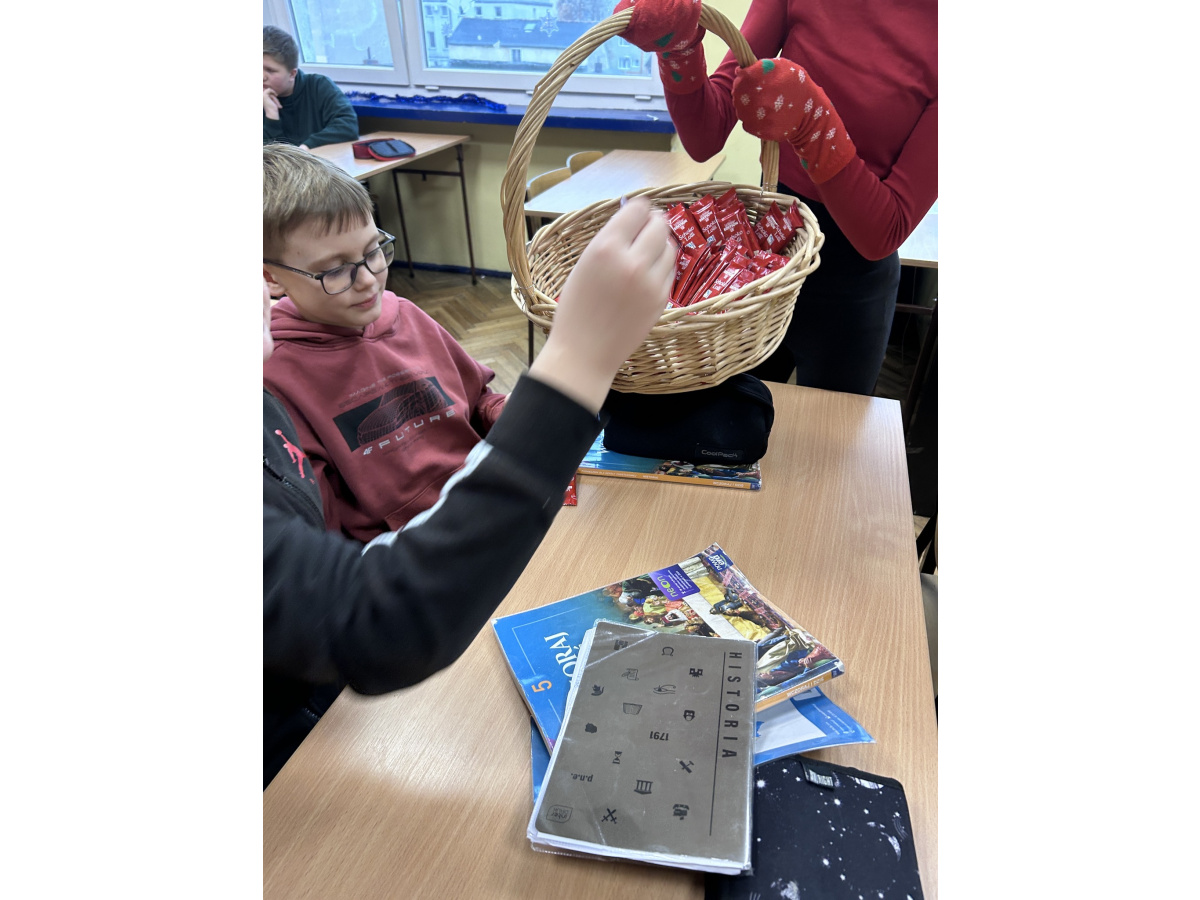Piątego grudnia korytarze szkolne opanowały świąteczne swetry, czerwono-biało-zielone ubrania, czapki Mikołaja, uszy elfów, nosy reniferów i cała masa gadżetów rodem z jarmarku bożonarodzeniowego. Samorząd Uczniowski ruszył w teren z misją specjalną: rozdawanie słodkich upominków ufundowanych przez Radę Rodziców i Dyrekcję szkoły. Prezenty trafiły do wszystkich uczniów i pracowników, bo w Mikołajki nikt nie jest "za duży na czekoladę” Było kolorowo i radośnie, a takie dni przypominają nam, że magia świąt tkwi w drobnych gestach i wspólnym świętowaniu.