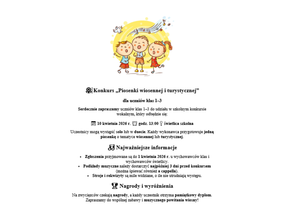 POKAŻ SWÓJ TALENT! KONKURS WOKALNY DLA KLAS 1–3
