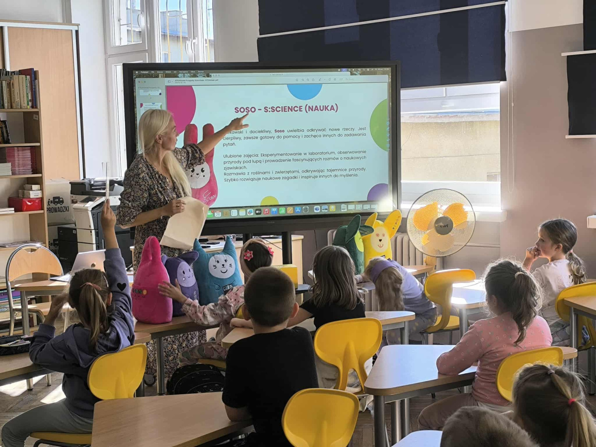 Każda z klas otrzymała własny zestaw maskotek STEAMowych, które przez cały rok będą obecne w salach lekcyjnych. Maskotki pełnią rolę nie tylko dekoracyjną – mają stać się codziennymi inspiratorami, które przypominają dzieciom o wartościach projektu: kreatywności, odkrywaniu i współpracy.