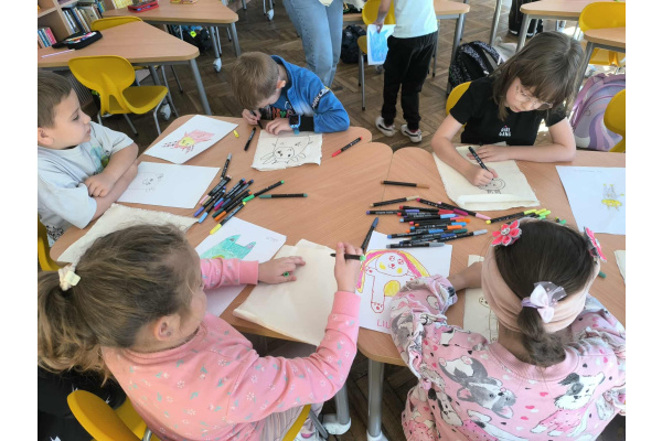 Jednym z kluczowych momentów inauguracji programu była wizyta pani profesor Marleny Plebańskiej. Pod jej czujnym okiem uczniowie projektowali własne maskotki, które stały się STEAMowymi „towarzyszami” – symbolicznymi reprezentacjami pasji do nauki, eksperymentowania i tworzenia. Każde dziecko miało okazję wcielić się w małego projektanta i konstruktora, mierząc się z zadaniami z zakresu planowania, wyboru materiałów, precyzyjnego wykonania i estetyki. Powstały wyjątkowe prace, które wzbudziły wśród pierwszaków ogromną radość i poczucie dumy.