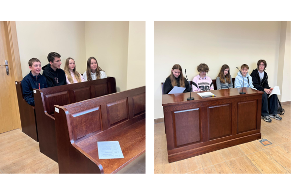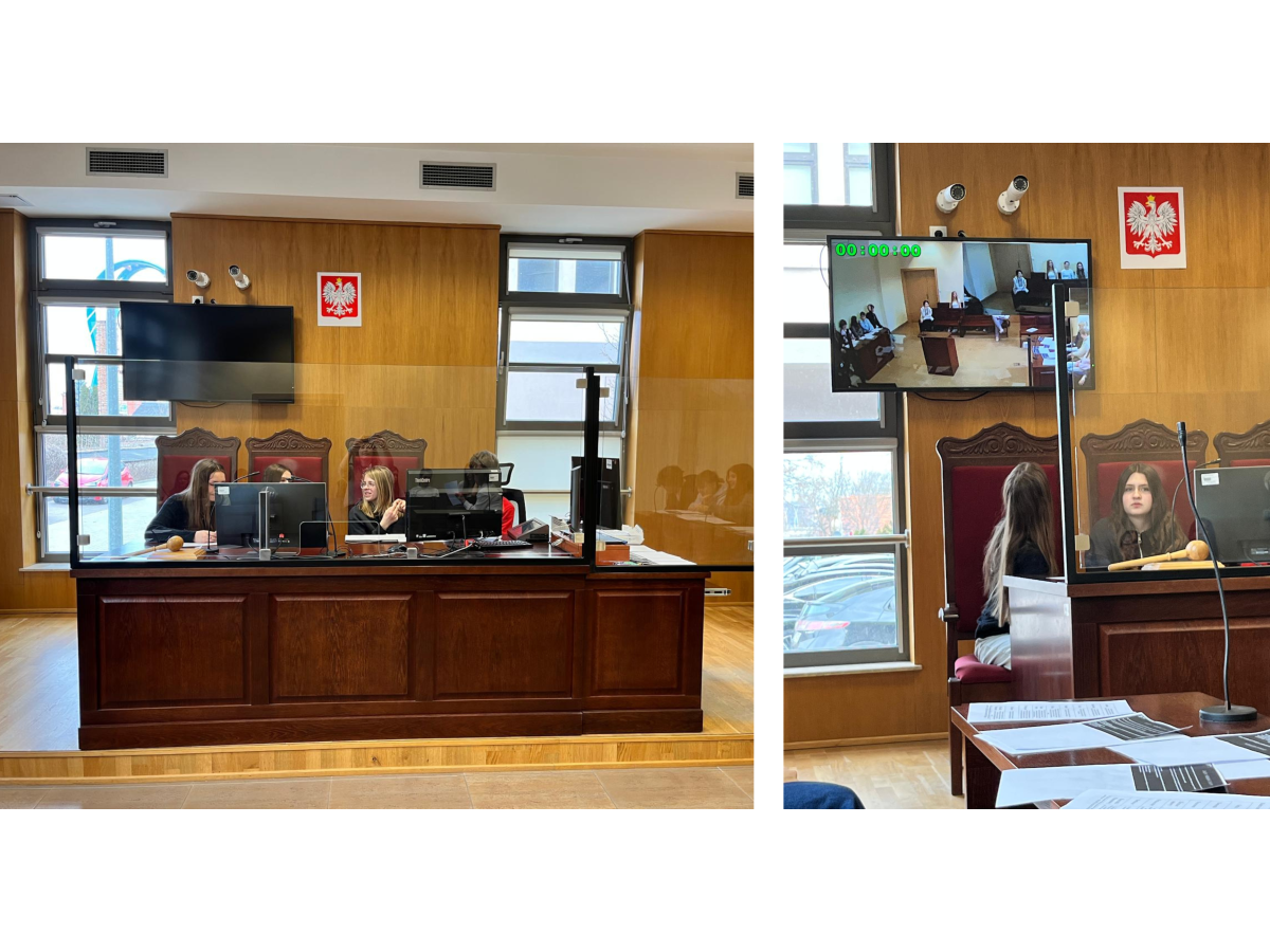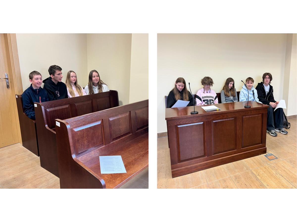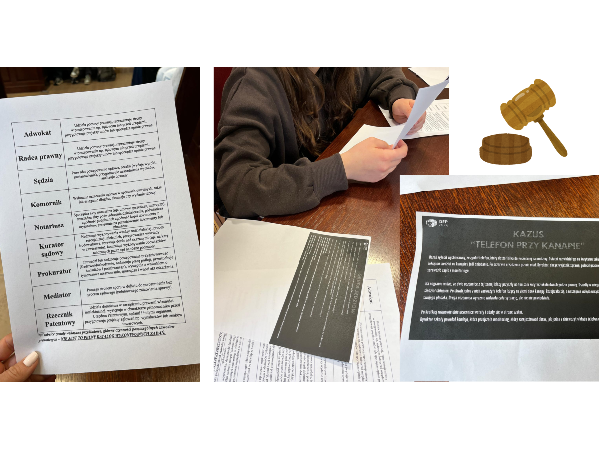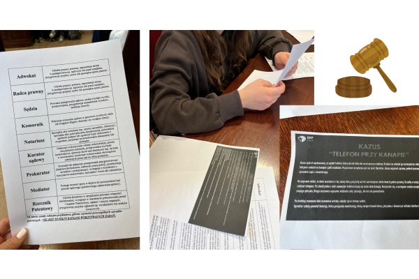 Zajęcia były niezwykle angażujące, gdyż tematyka rozprawy była bliska sytuacjom z życia codziennego uczniów – dotyczyła znalezienia telefonu komórkowego na terenie szkoły i prawdopodobnego przywłaszczenia go przez jedną z uczennic. Scenariusz pozwolił uczniom lepiej zrozumieć konsekwencje podejmowanych decyzji oraz znaczenie przestrzegania prawa w życiu codziennym. Udział w tych warsztatach był dla uczniów cennym doświadczeniem, które nie tylko poszerzyło ich wiedzę, ale także rozwinęło umiejętność argumentowania, współpracy, odpowiedzialnego podejmowania decyzji i rozwiązywania problemów społecznych. Pani sędzia uświadomiła naszych uczniów, że prawo ma realną moc i sprawczość, a zawody prawnicze są blisko ludzi i ich codziennych spraw. Dziękujemy!