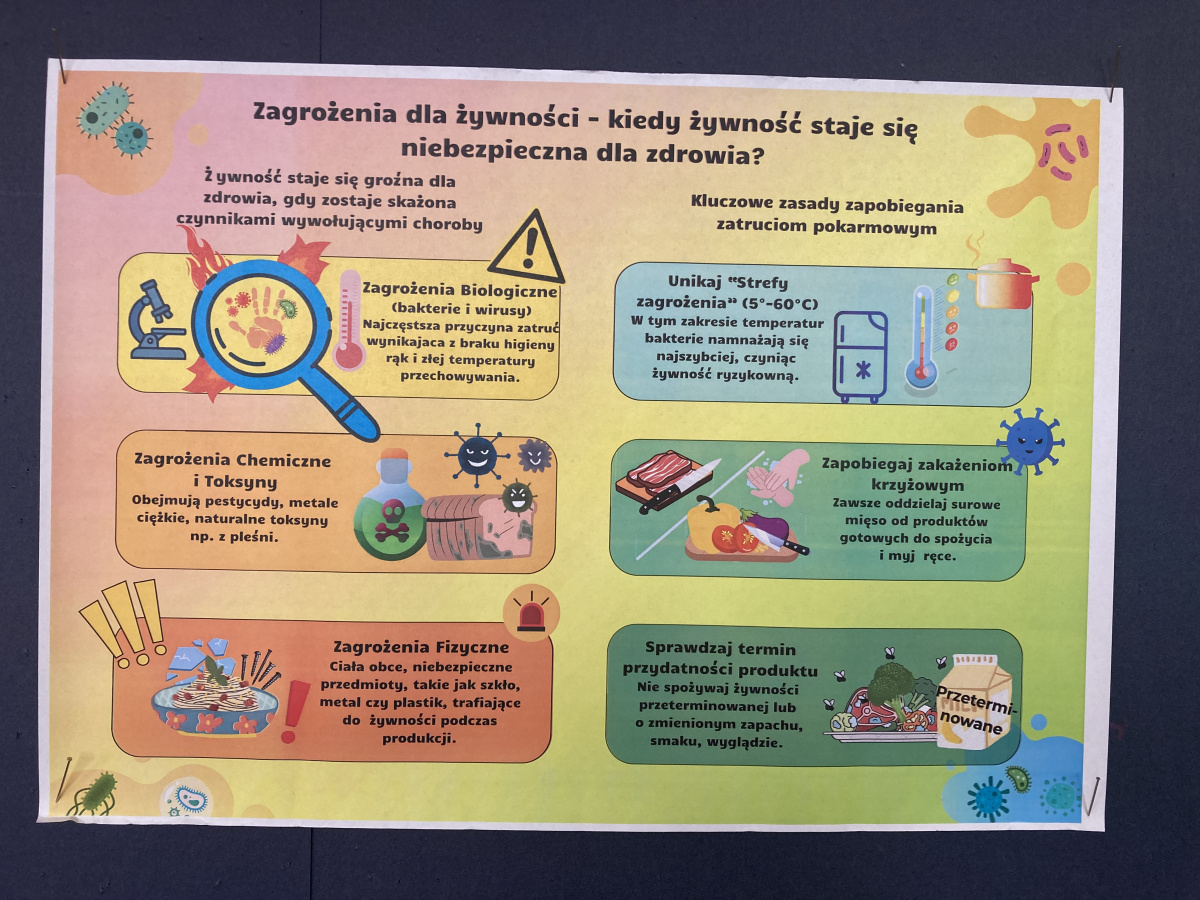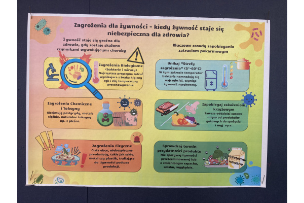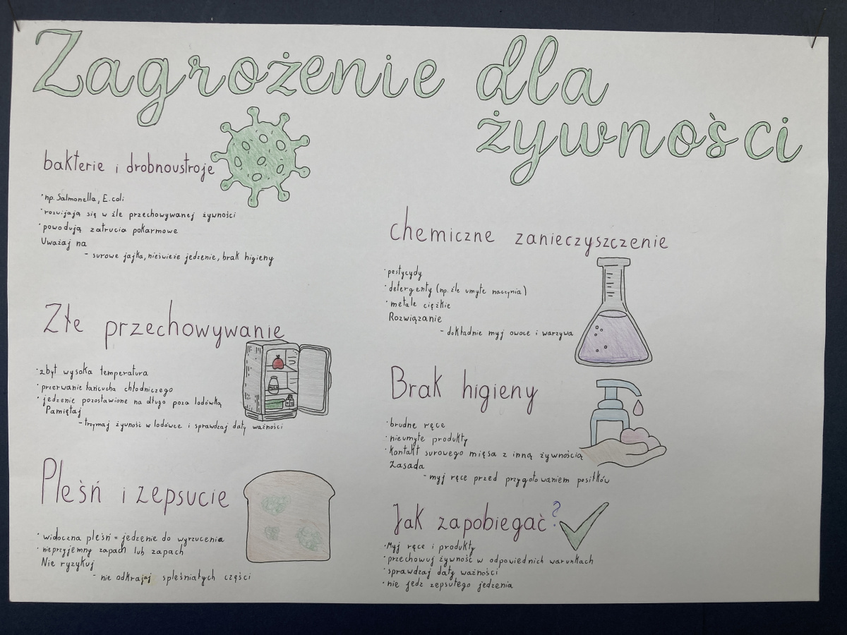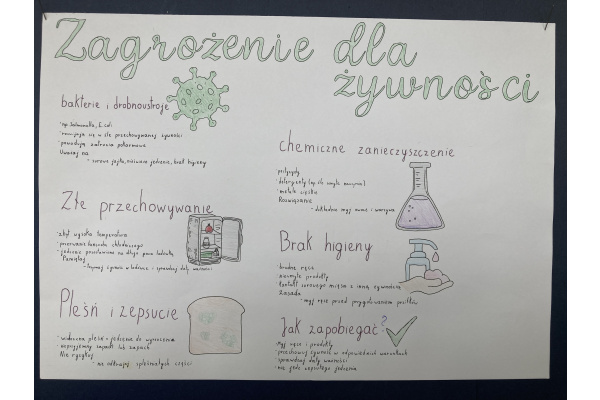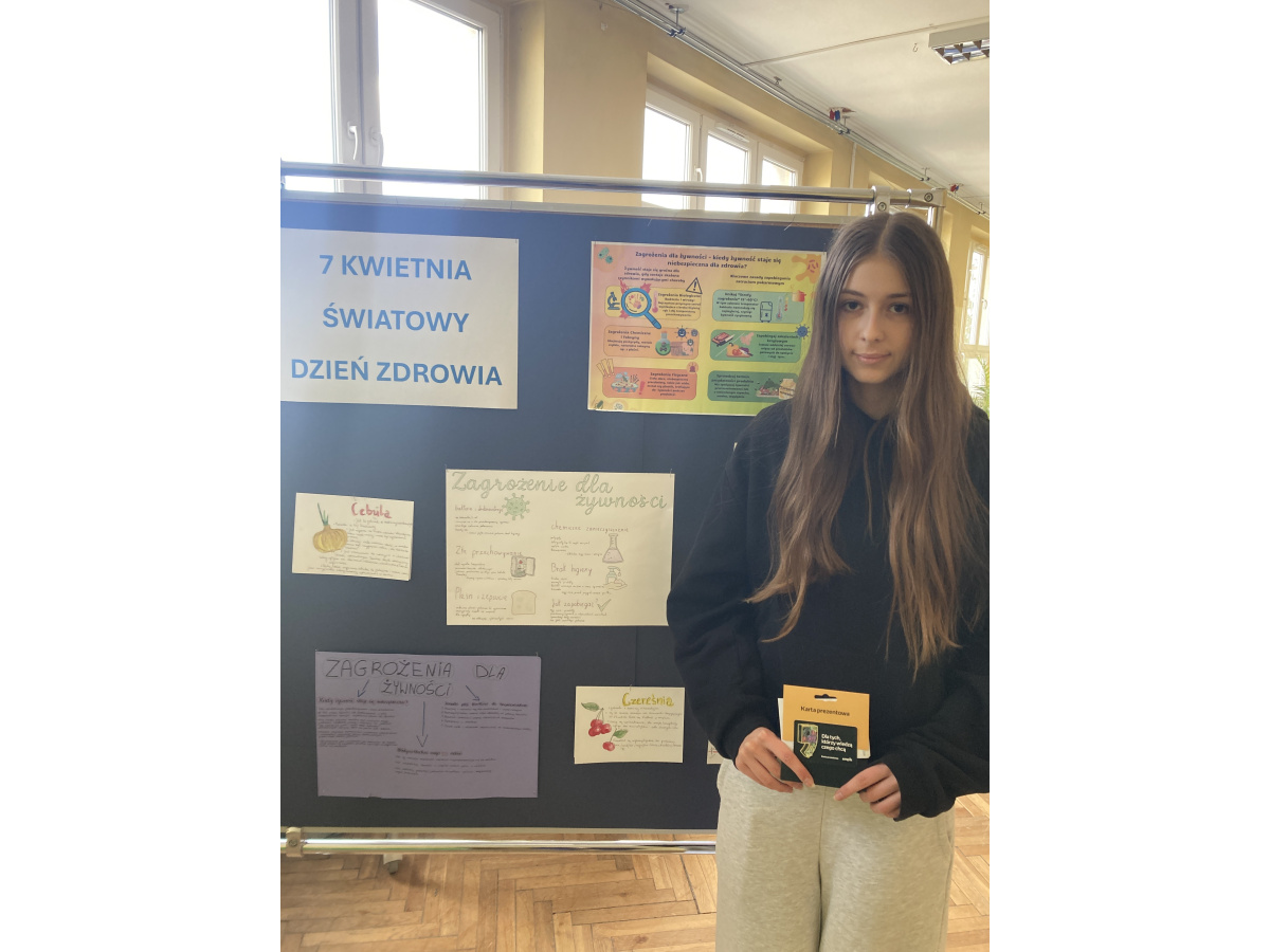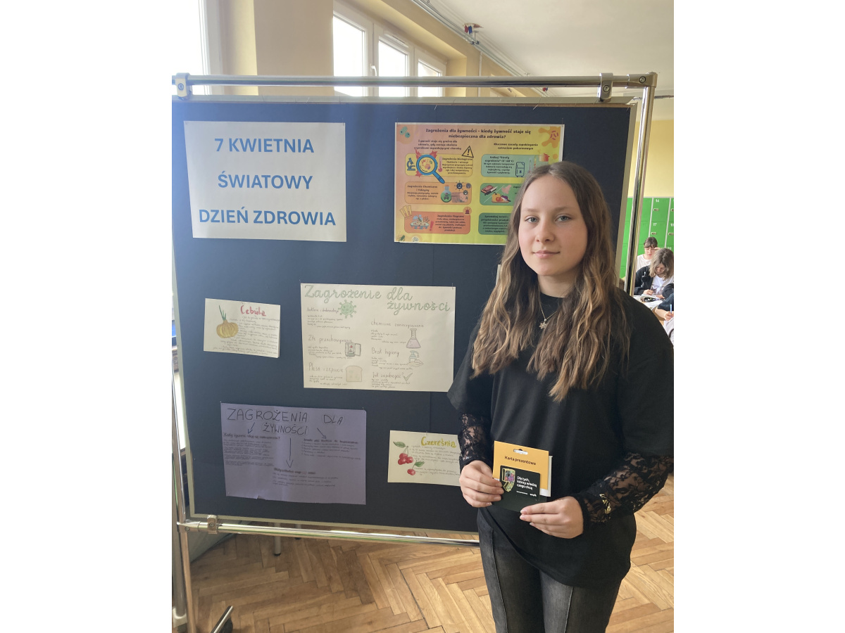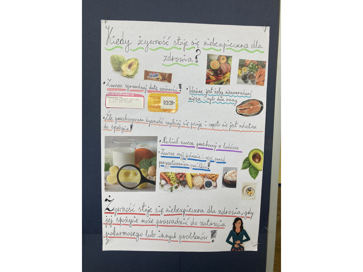 Jednocześnie uczniowie brali udział w konkursie plastycznym dotyczącym zagrożeń dla żywności. Konkurs polegał na wykonaniu plakatu przedstawiającego największe zagrożenia dla produktów spożywczych jak np. przekroczony termin ważności, zanieczyszczenie metalami ciężkimi, złe przechowywanie itp. Oto laureatki konkursu: