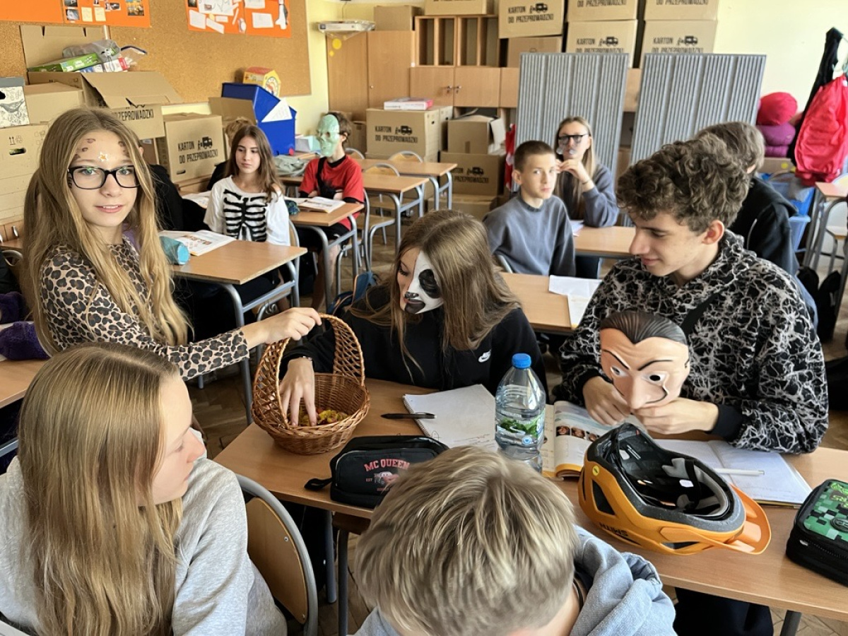 Piątek 31 października stał się okazją do refleksji oraz poznania ciekawostek, jak różne kultury celebrują pamięć o bliskich. W młodszych i starszych klasach nie zabrakło polskiego kontekstu związanego z Zaduszkami i Uroczystością Wszystkich Świętych. Podczas zajęć uczniowie poznali również barwne i radosne święto Día de Muertos z Meksyku. Odkryli w ten sposób znaczenie ofrendas, symbolikę kwiatów cempasúchil i kolorowych czaszek. Dowiedzieli się także o innych zwyczajach związanych z upamiętnianiem przodków, między innymi japońskim święcie Obon, wybranych afrykańskich i azjatyckich rytuałach oraz celtyckich korzeniach Halloween i współczesnych zwyczajach oswajania strachu poprzez zabawę.