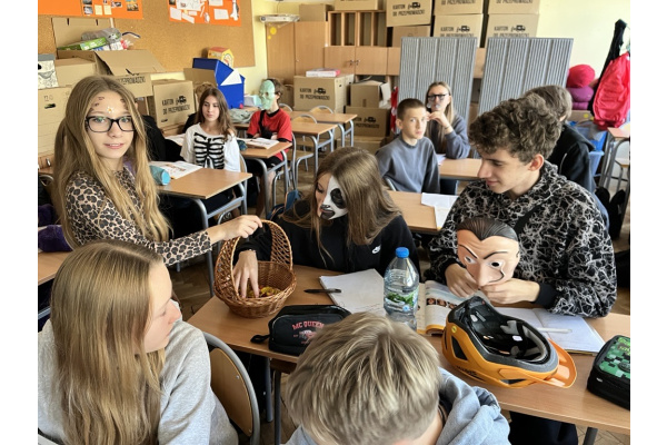 Oprócz tego w szkole odbył się konkurs tematyczny dla klas 4-8. Uczniowie mogli przygotować prace inspirowane dynią. Były to więc przepisy kulinarne z gotowymi wyrobami cukierniczymi, lampiony z dyni, ciekawostki o dyni, wiersze, a nawet pająk wykonany z dyń zaprezentowany przez Kamila Kopacza z klasy 5a. Uczniowie klas starszych przygotowywali natomiast zestawy zadań o tematyce halloweenowej. Na lekcjach tańczyliśmy znane utwory z aplikacją "Just Dance", m.in. "Ghost Busters" czy "Thriller".
