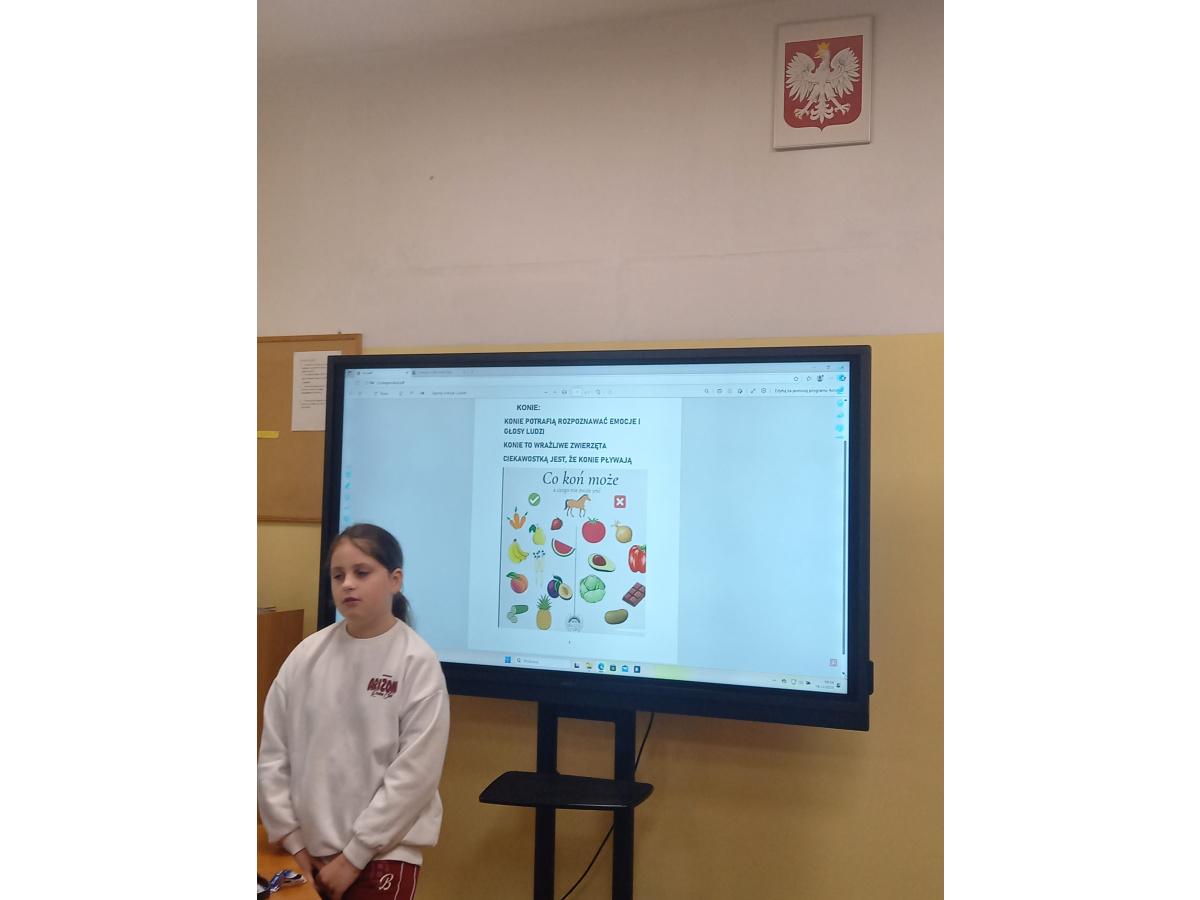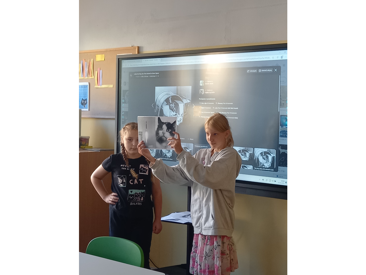 Maks zabrał wszystkich w fascynującą podróż po świecie motoryzacji – opowiadał o historii samochodów, najnowszych technologiach i ciekawostkach ze świata aut. Jagoda przedstawiła niezwykle interesującą lekcję o koniach – ich rasach, pielęgnacji oraz relacji człowieka z tymi wyjątkowymi zwierzętami. Nadia i Amanda przygotowały wspólną prezentację o pierwszym psie i kocie w kosmosie – opowiedziały o misjach zwierząt w przestrzeni kosmicznej i ich znaczeniu dla rozwoju badań nad lotami załogowymi.