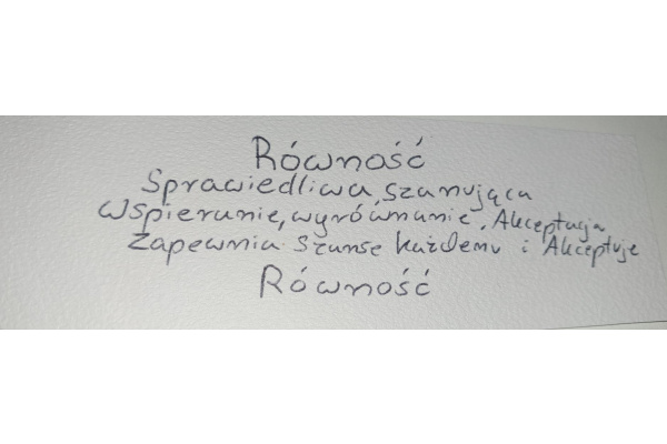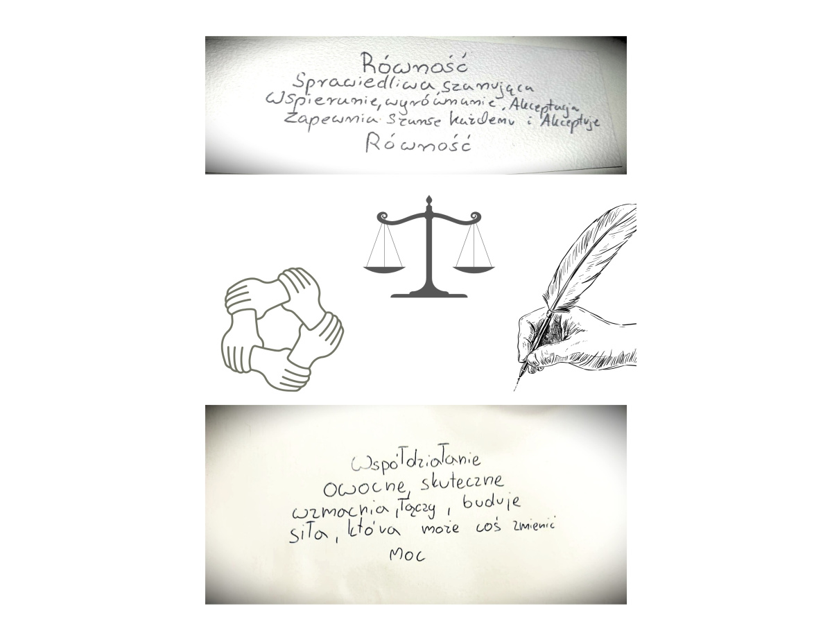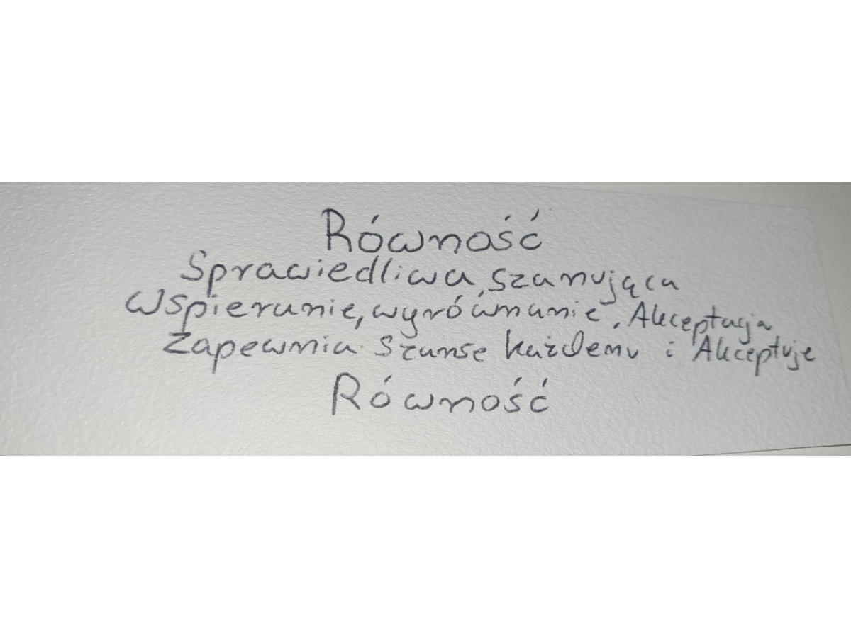 Emilia Połczyńska i Oliwia Zacheja, uczennice klasy 6a, zastanawiały się, czym jest dla nich równość płci i współdziałanie. Wykorzystały w tym celu "Cinquain", czyli pięciolinijkowy wiersz wymyślony przez Adelaide Crapsey. Była amerykańską poetką, która czerpała inspirację z japońskiego haiku i tanki.