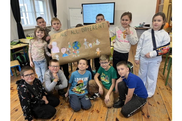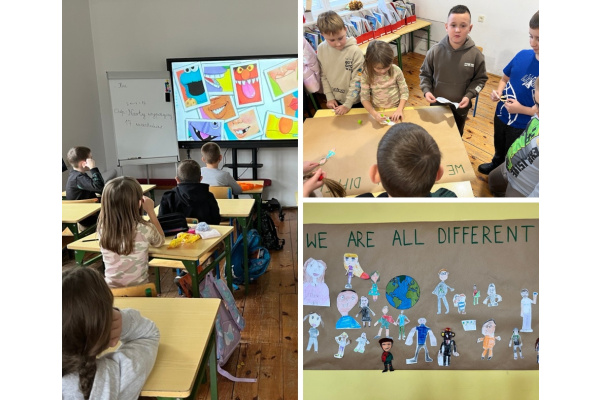 W ramach Tygodnia Edukacji Globalnej uczniowie klas 2a, 2b i 4a wzięli udział w projekcie językowym „We are all different”. Jego celem było nie tylko rozwijanie języka angielskiego, ale także kształtowanie postaw otwartości, tolerancji i solidarności.