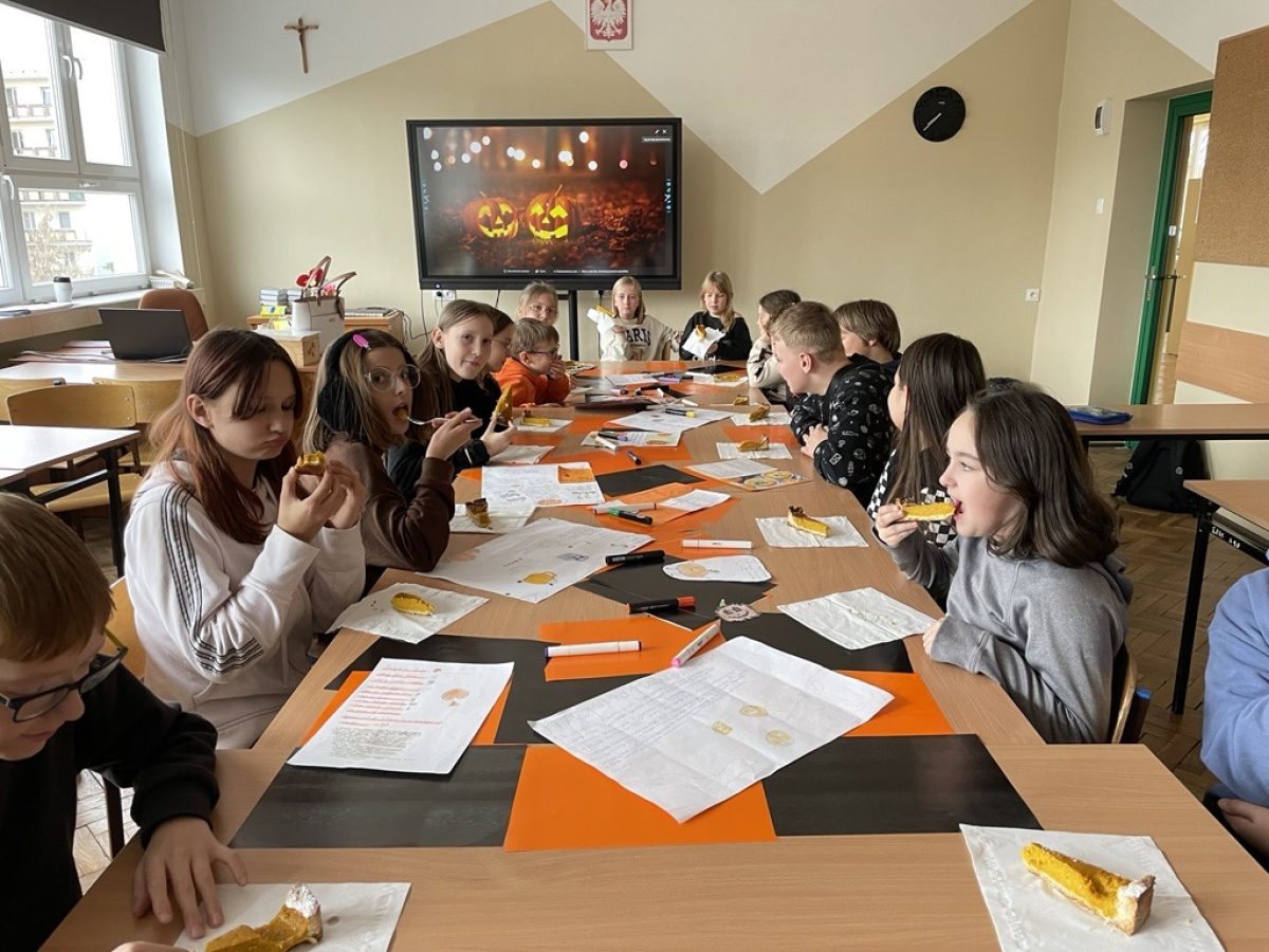 Projekt zakończyło wspólne „Spotkanie przy halloweenowych ciasteczkach”, które stało się okazją do rozmów o tradycjach rodzinnych i integracji. Dzięki projektowi uczniowie rozwijali kompetencje społeczne, językowe i cyfrowe, ucząc się współpracy, otwartości na różnorodność, ale też poszanowania dla własnej tradycji.