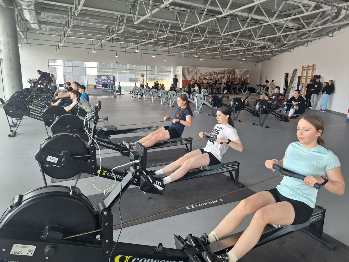 W marcu klasy ósme gościły w progach klubu wioślarskiego LOTTO - Bydgostia . Trenerzy zorganizowali zawody sportowe na ergometrach wioślarskich. Udział w zawodach wzięli uczniowie klasy 8a i 8b. Wszyscy walczyli dzielnie na swoich torach, a motywacji naszym wioślarzom dodawał doping kolegów z klasy. Najlepsi chłopcy i dziewczęta otrzymali od klubu Bydgostia piękne pamiątkowe medale. Bardzo dziękujemy za przeprowadzenie zajęć oraz możliwość poznania nowej dla uczniów dyscypliny sportowej, którą na suchym lądzie ciężko zaprezentować. Zawody były świetną zabawą dla naszych uczniów i miłym relaksem od nauki przed zbliżającymi się egzaminami.