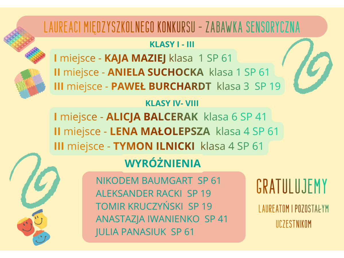 WYNIKI MIĘDZYSZKOLNEGO KONKURSU „SENSORYCZNA ZABAWKA”