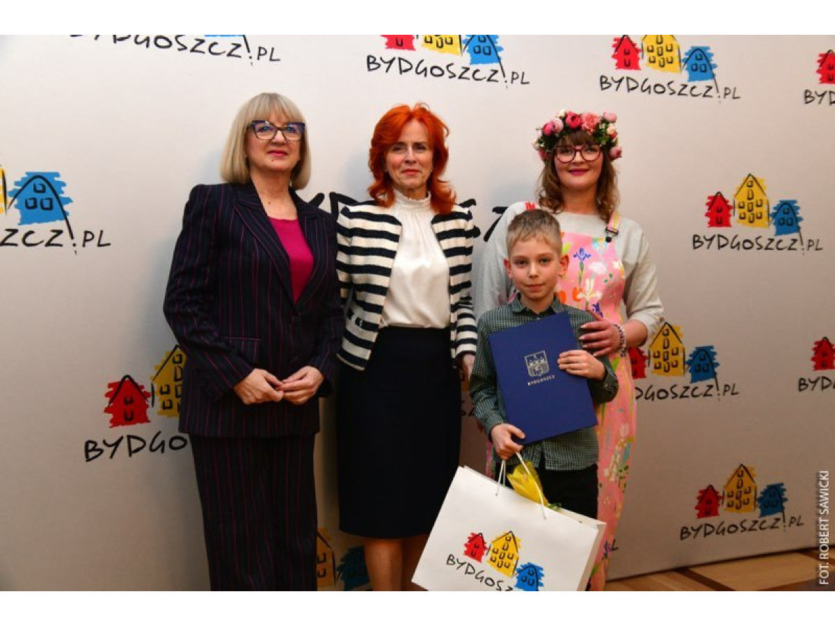 Dawid wziął udział w uroczystym podsumowaniu konkursu w Urzędzie Miasta Bydgoszczy, gdzie odebrał wyróżnienie z rąk zastępczyni prezydenta Bydgoszczy pani Iwony Waszkiewicz oraz wiceprzewodniczącej Rady Miasta pani Elżbiety Rusielewicz. Wcześniej uczestnicy konkursu mieli okazję wziąć udział w kreatywnych warsztatach, podczas których budowali mechanizm poruszania się robota-zająca z klocków robotycznych oraz wykonywali świecące pisanki ozdabiane kolorowymi dekoracjami i światełkami LED.