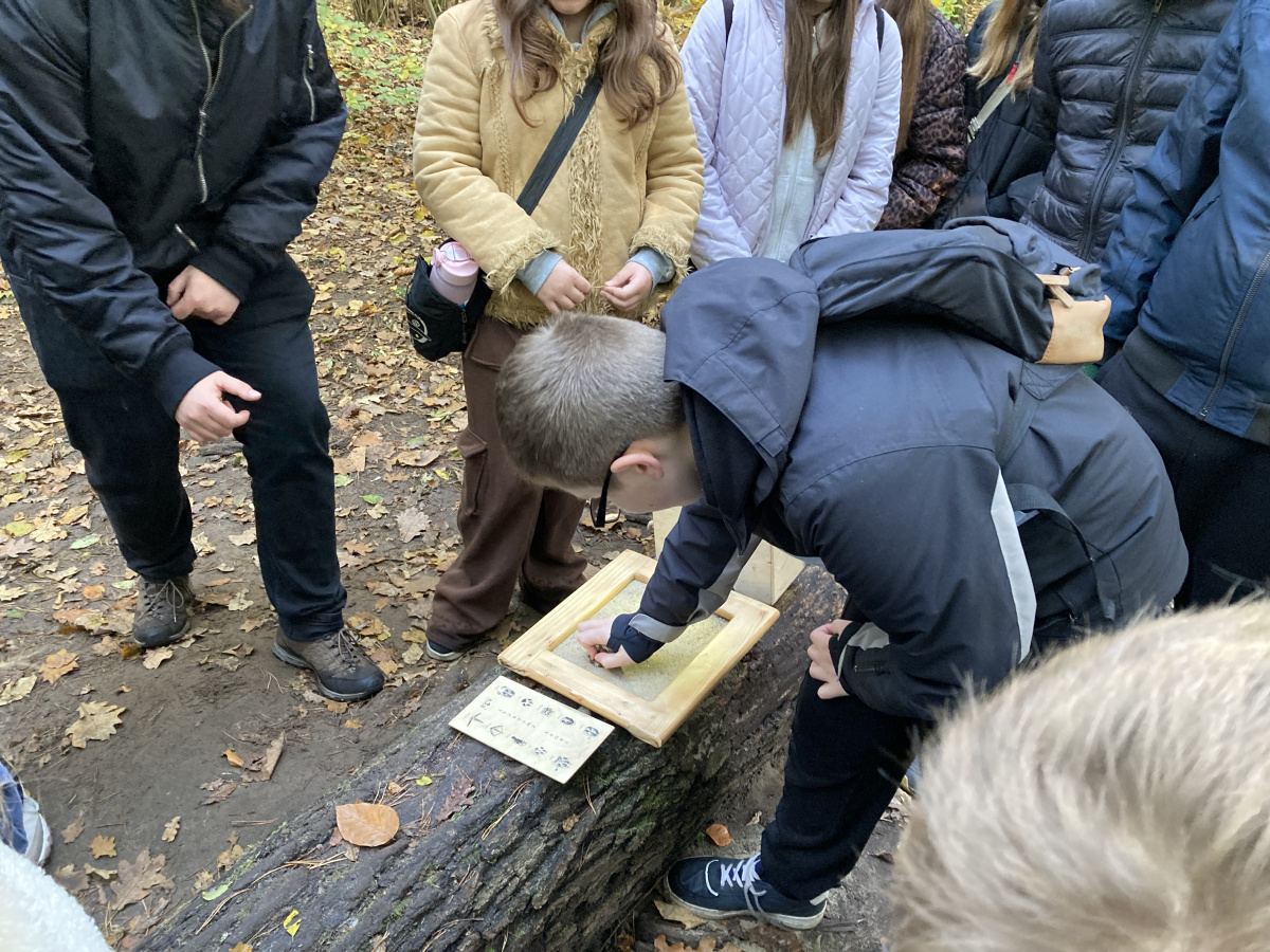 Dnia 22 października br. klasy 6b i 7b udały się na warsztaty ekologiczne do Kujawsko-Pomorskiego Centrum Edukacji Ekologicznej w Myślęcinku. Podczas zajęć uczniowie rozpoznawali gatunki drzew po liściach, pędach, owocach i pokroju drzewa. Jednocześnie rozpoznawali również tropy zwierząt leśnych takich jak: wilka, lisa, sarny i jelenia. Zapoznali się również z zanieczyszczeniami środowiska w lasach i wodach.