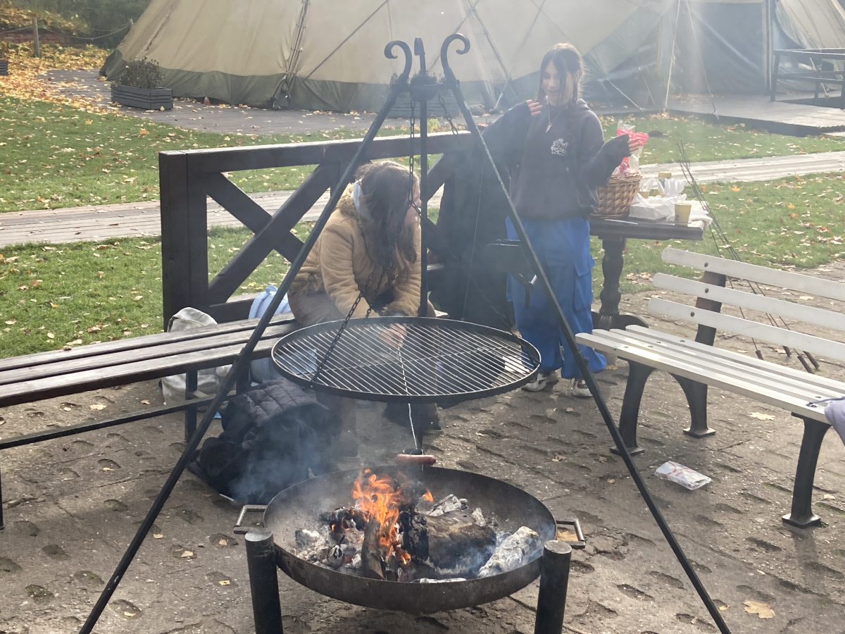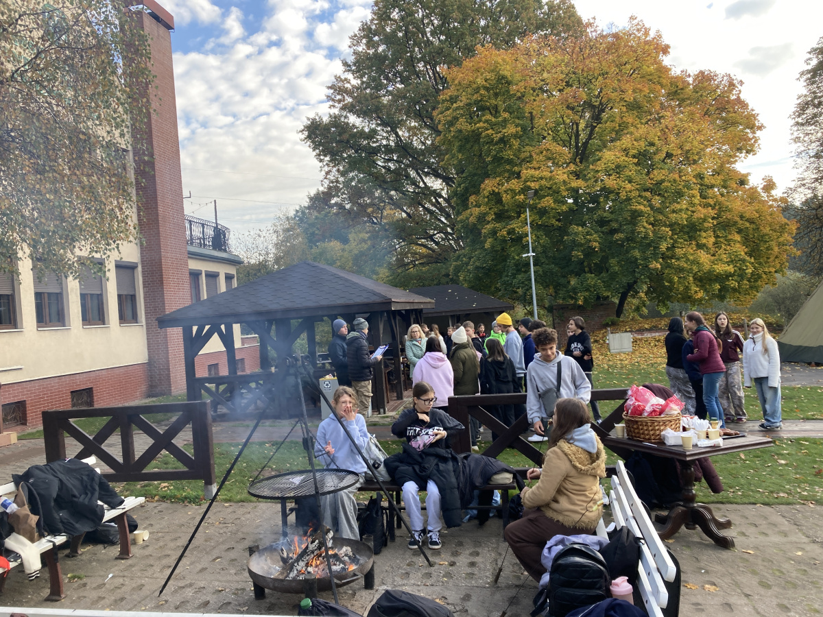 w postaci kiełbasek przypiekanych na ognisku, herbaty i napojów. Po posiłku dzieci zajęły się grami sportowymi w koszykówkę lub piłkę nożną oraz spacerami wokół KPCEE.